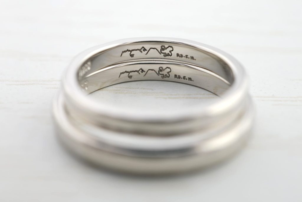 指輪の内側には、おふたりに書いていただいた