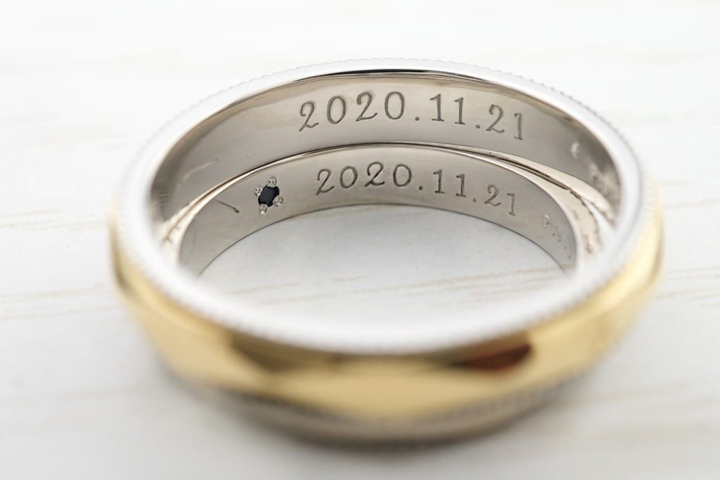 指輪の内側には手書きでおふたりの大切な記念日と