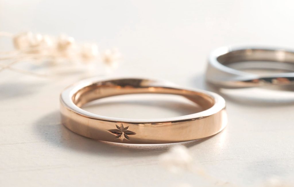 レディースリングはひねりの反対側に星彫りを