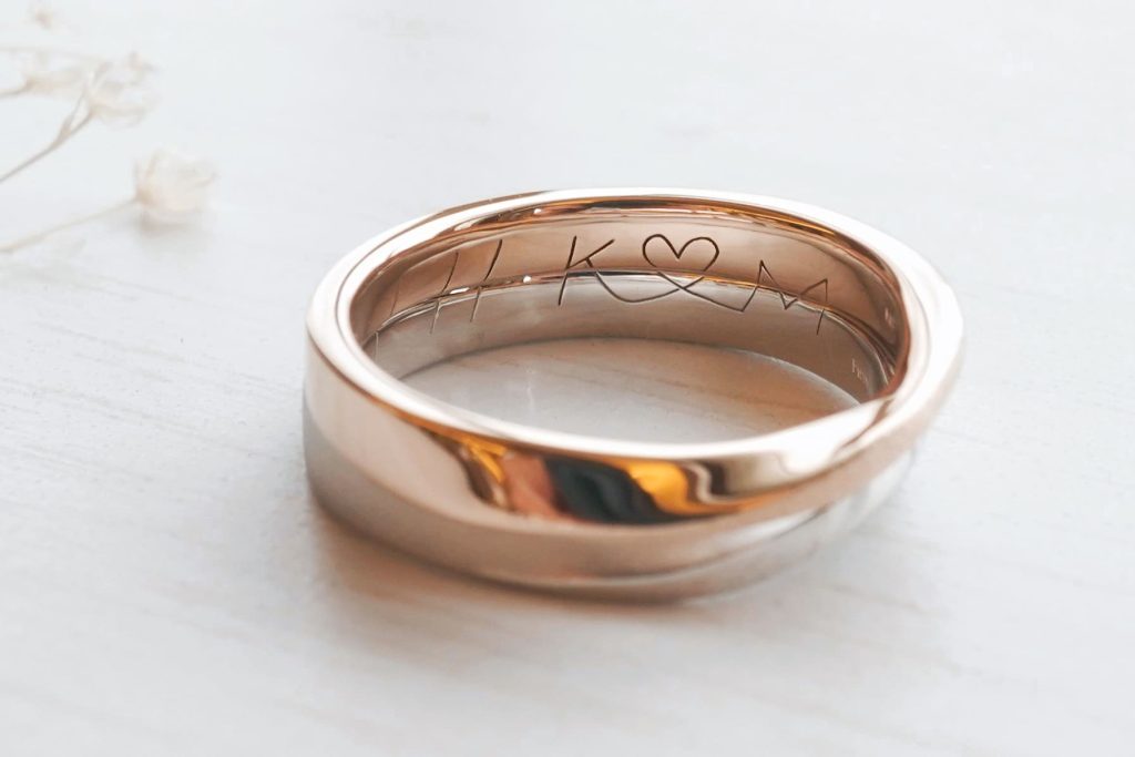 指輪の内側にはおふたりに手書きで書いていただいた