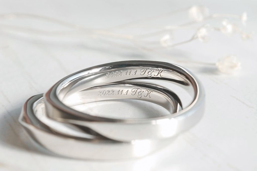指輪の内側にはおふたりの大切な記念日とイニシャルが