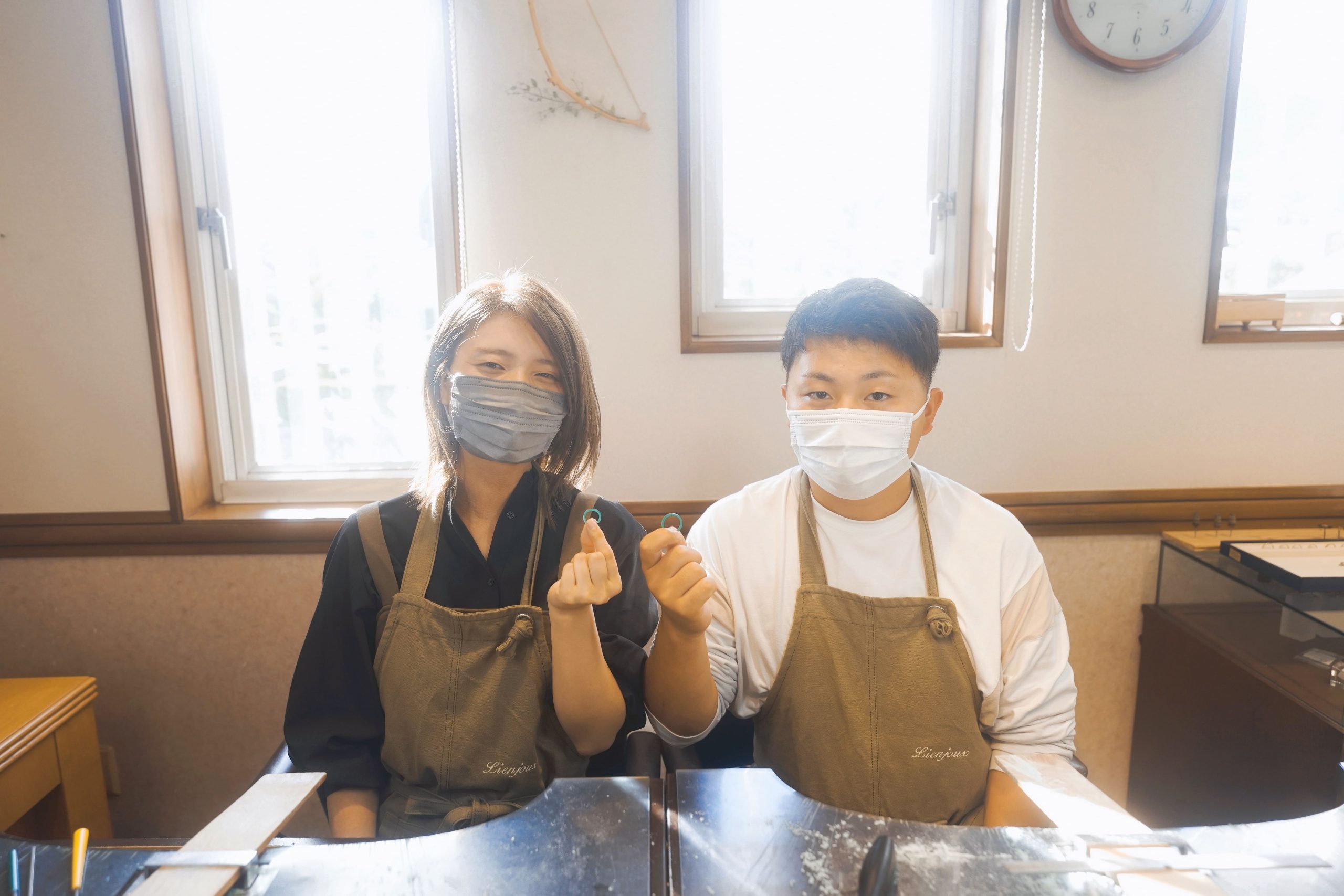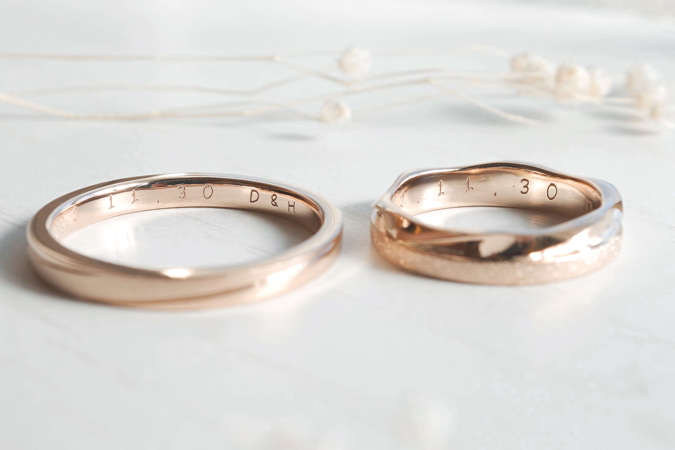 おふたりともk18ピンクゴールド素材で指輪を作製。