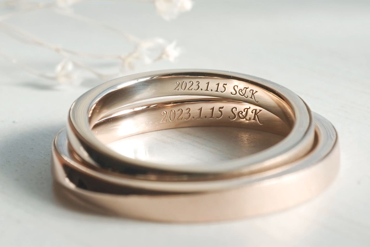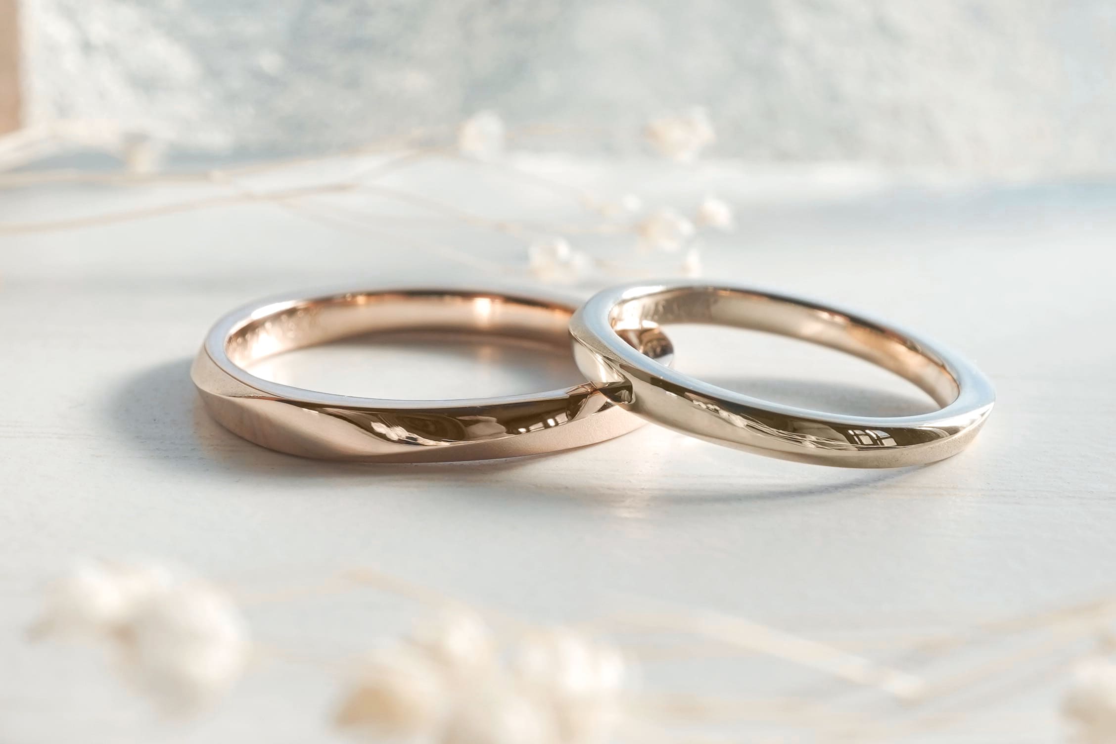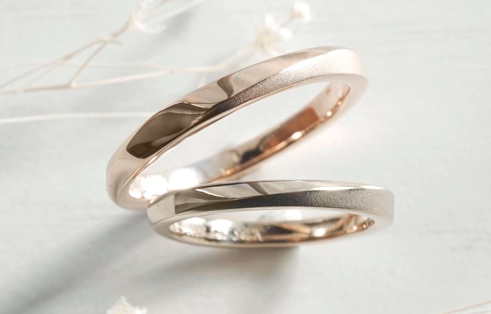お揃いのデザイン、素材を変えた手作り結婚指輪