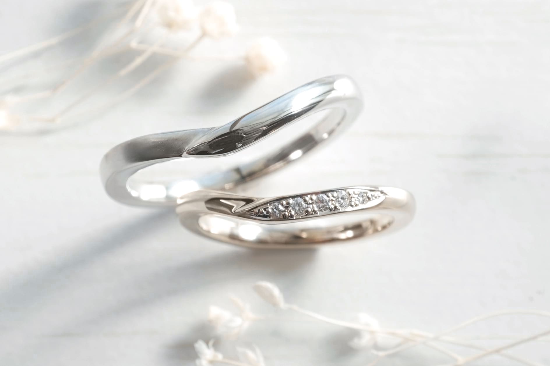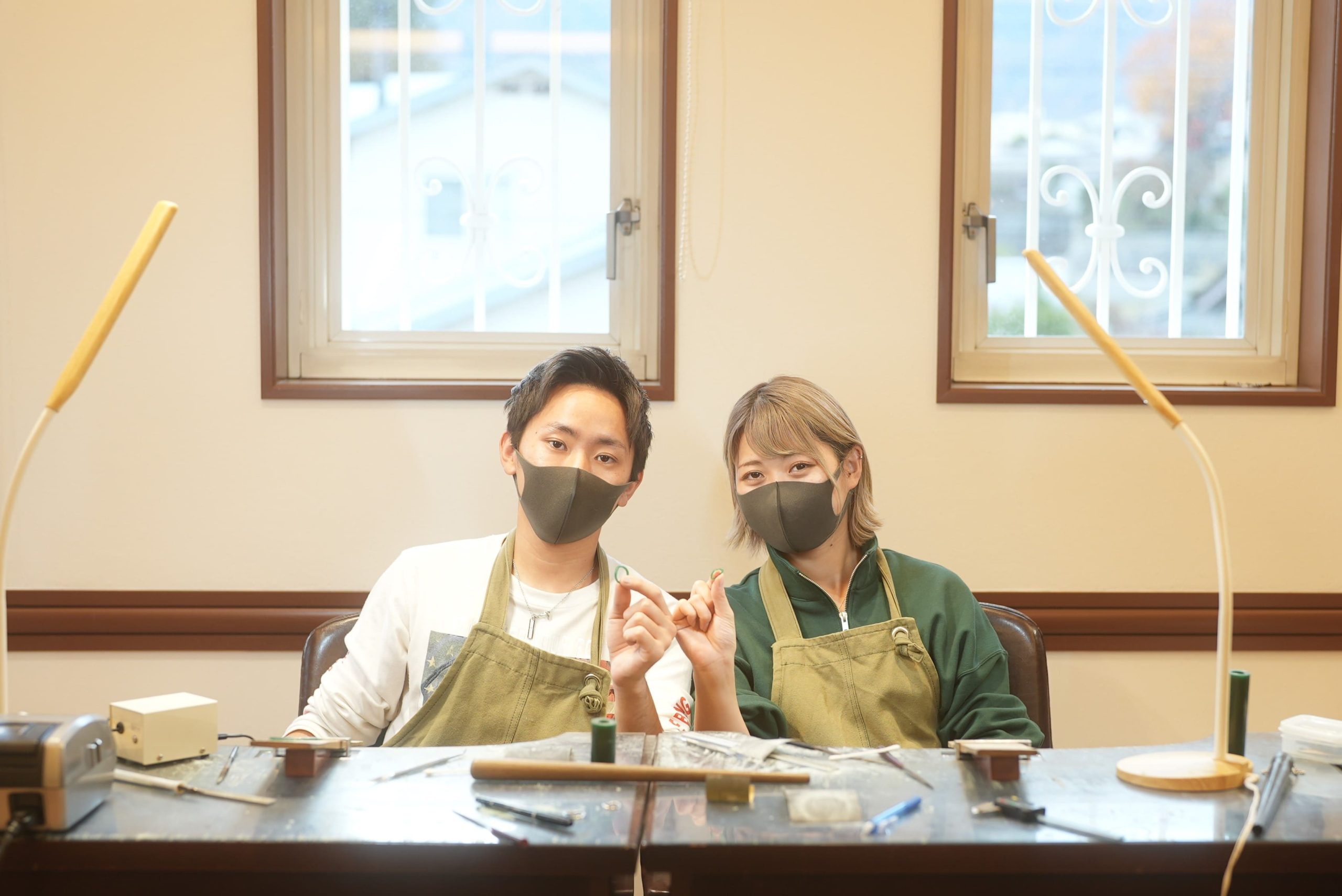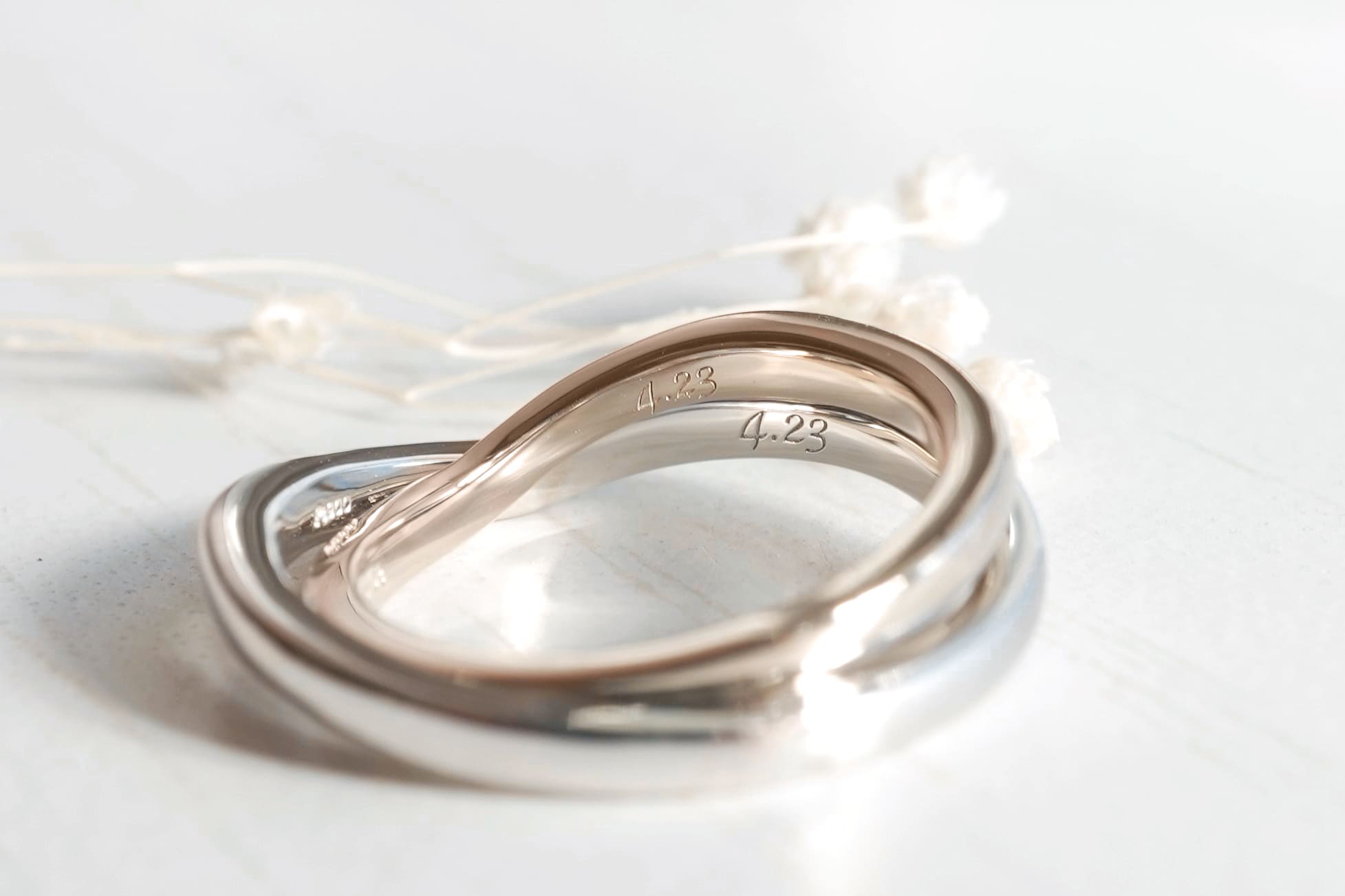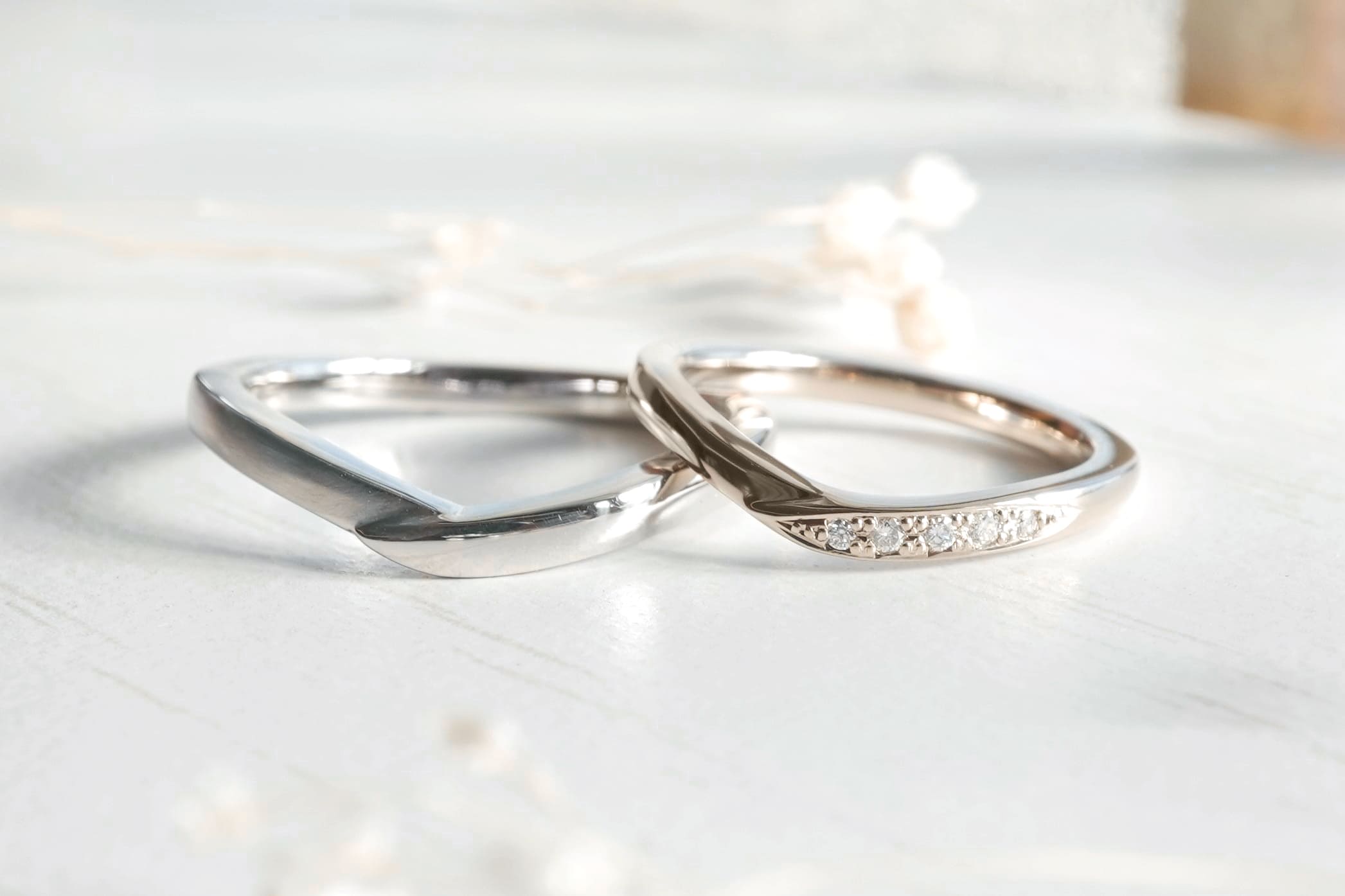 おふたりともV字デザインの指輪を手作りして頂きました。