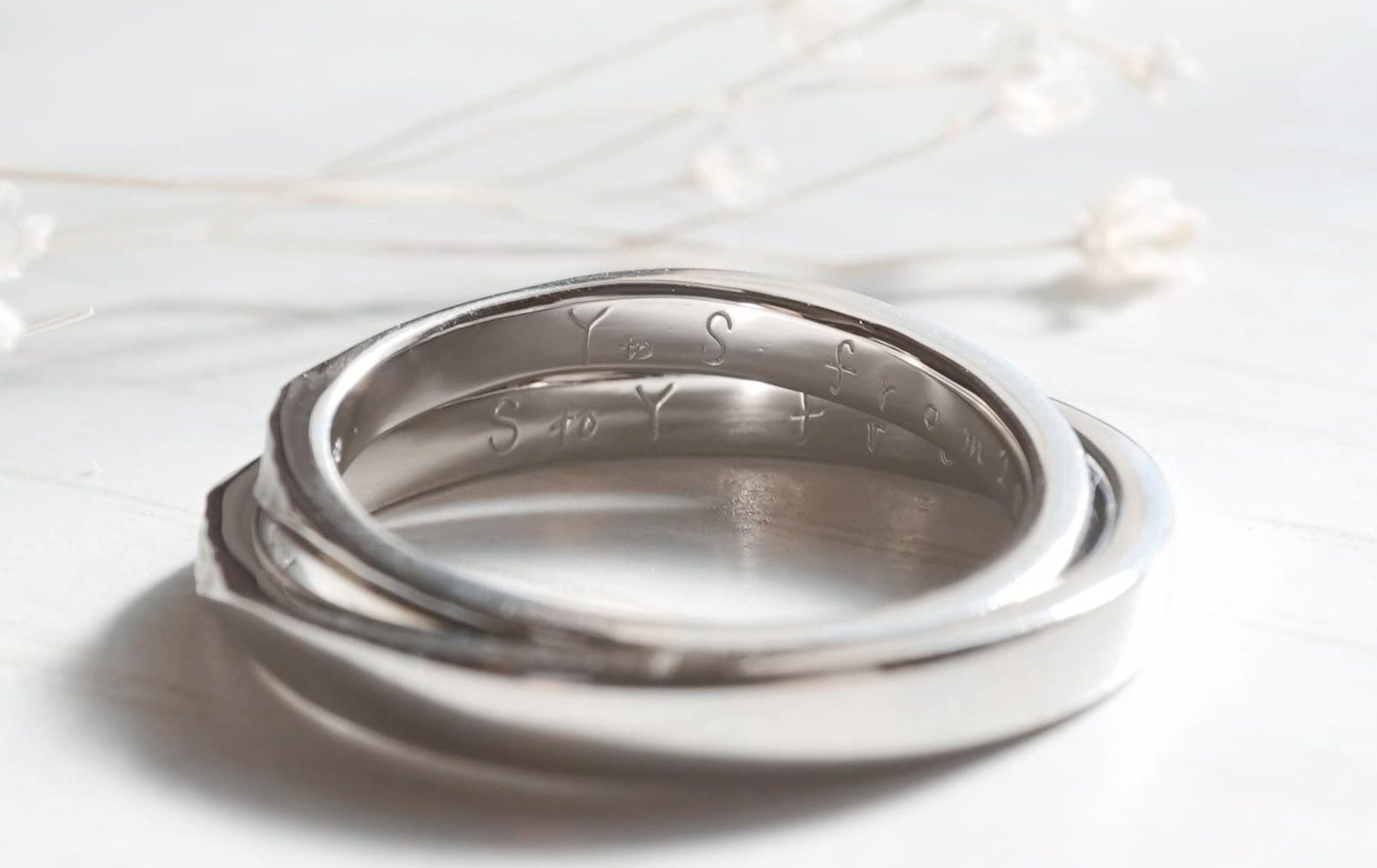 おふたりともPT900素材をお選びいただき指輪を作製。