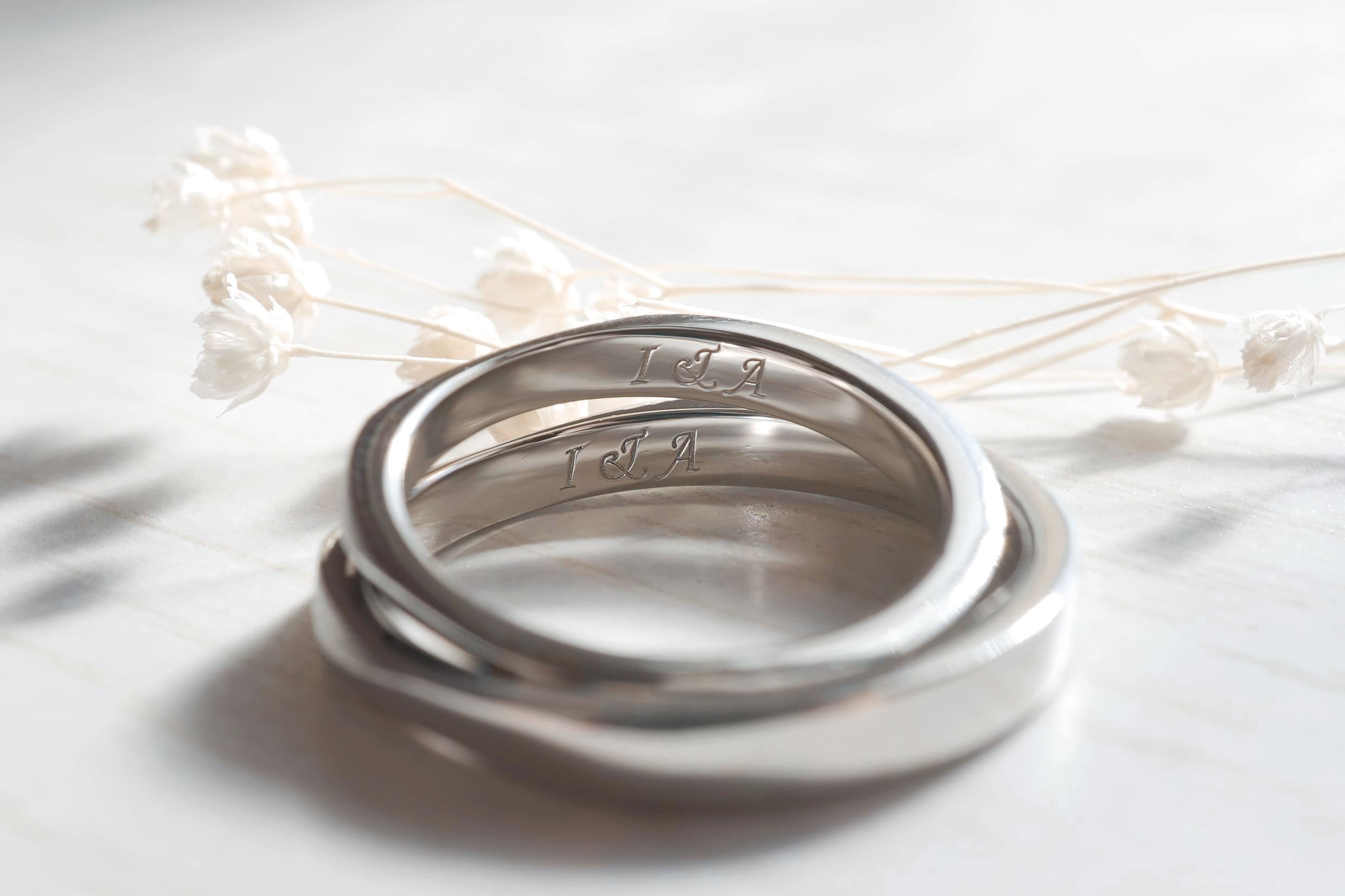 指輪の内側には、おふたりのイニシャルが