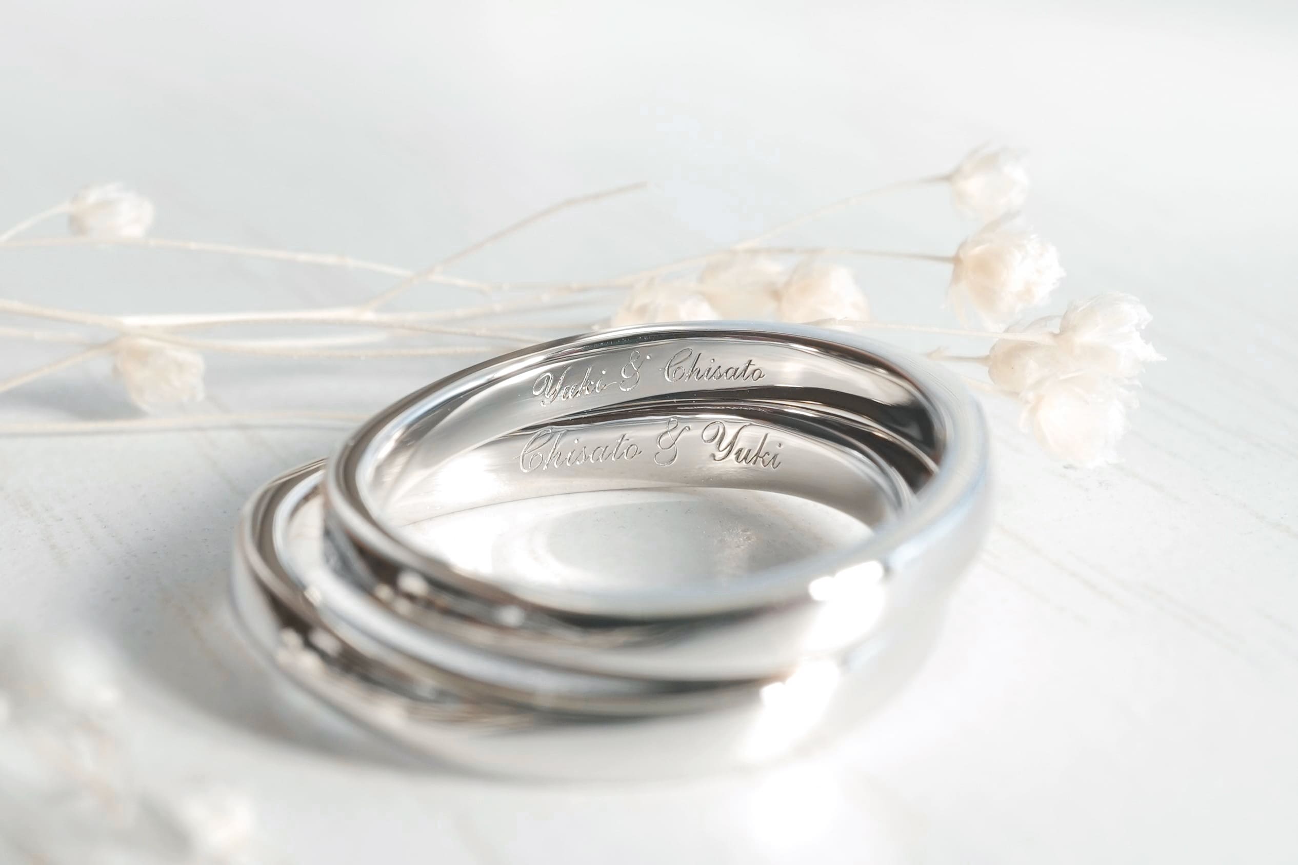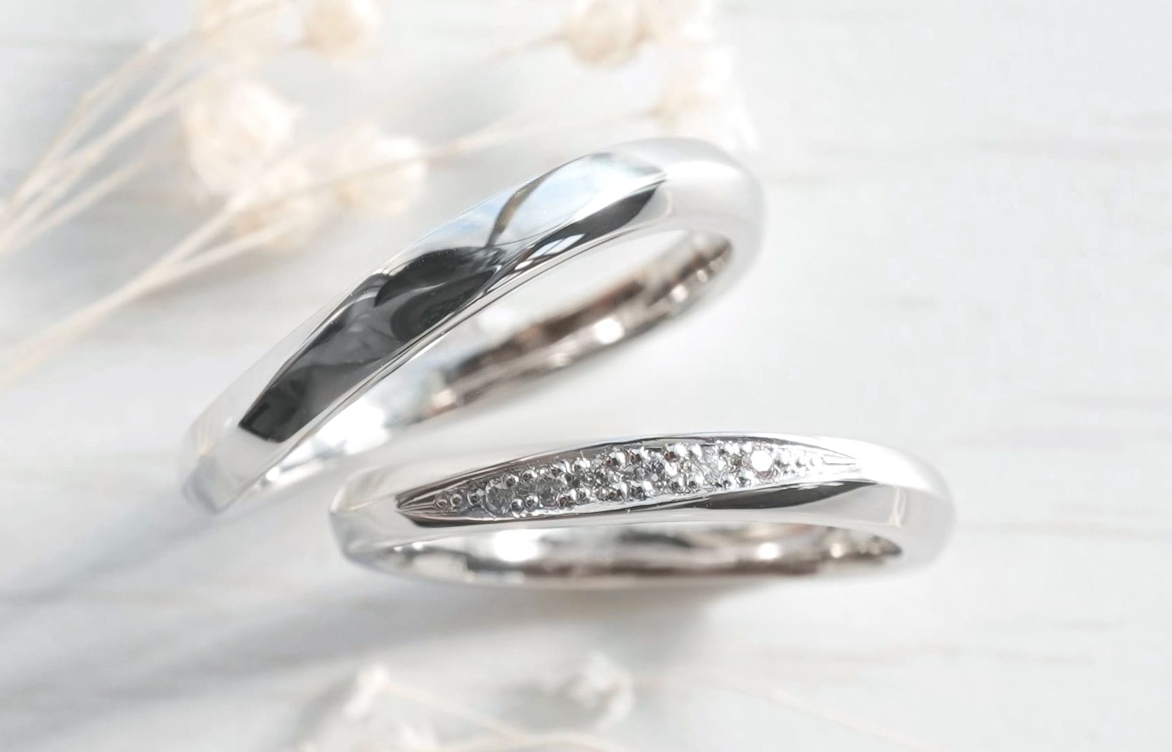 おふたりともPt900素材をお選びいただき指輪を作製。