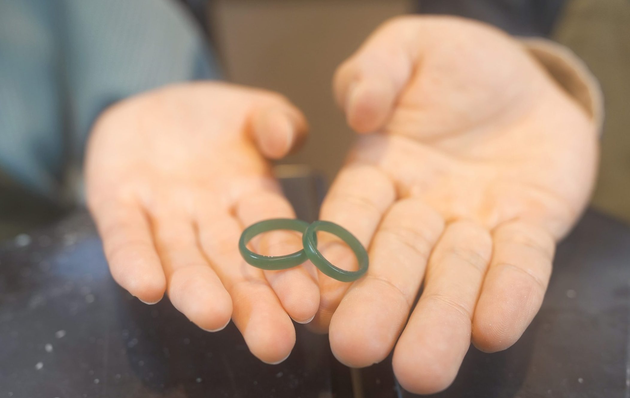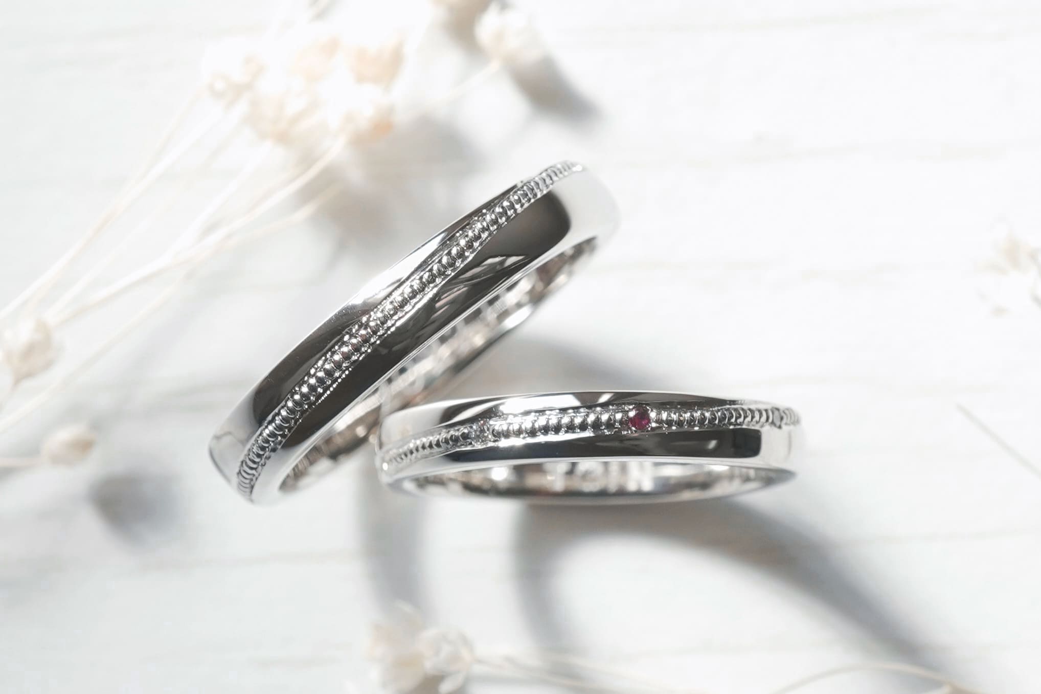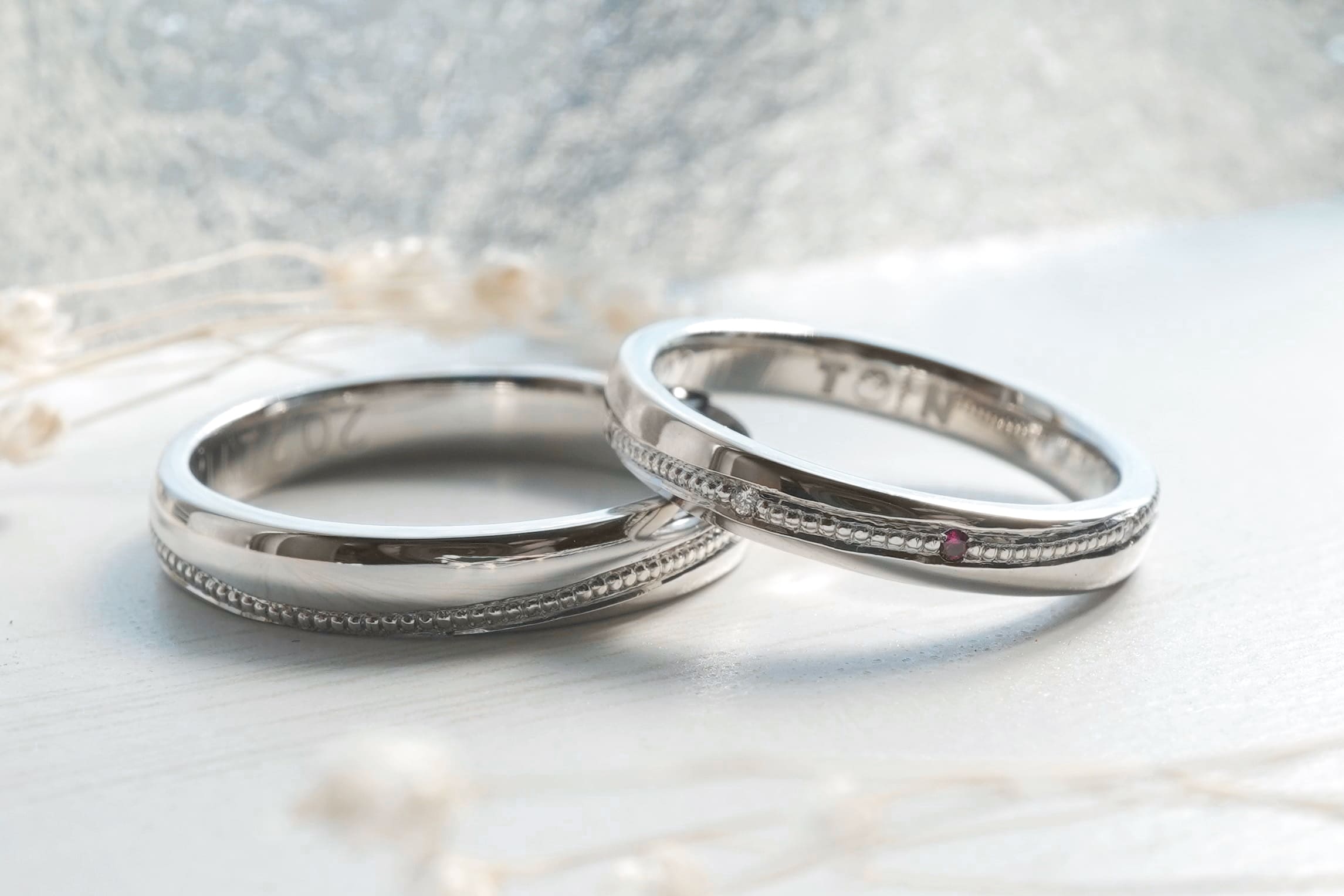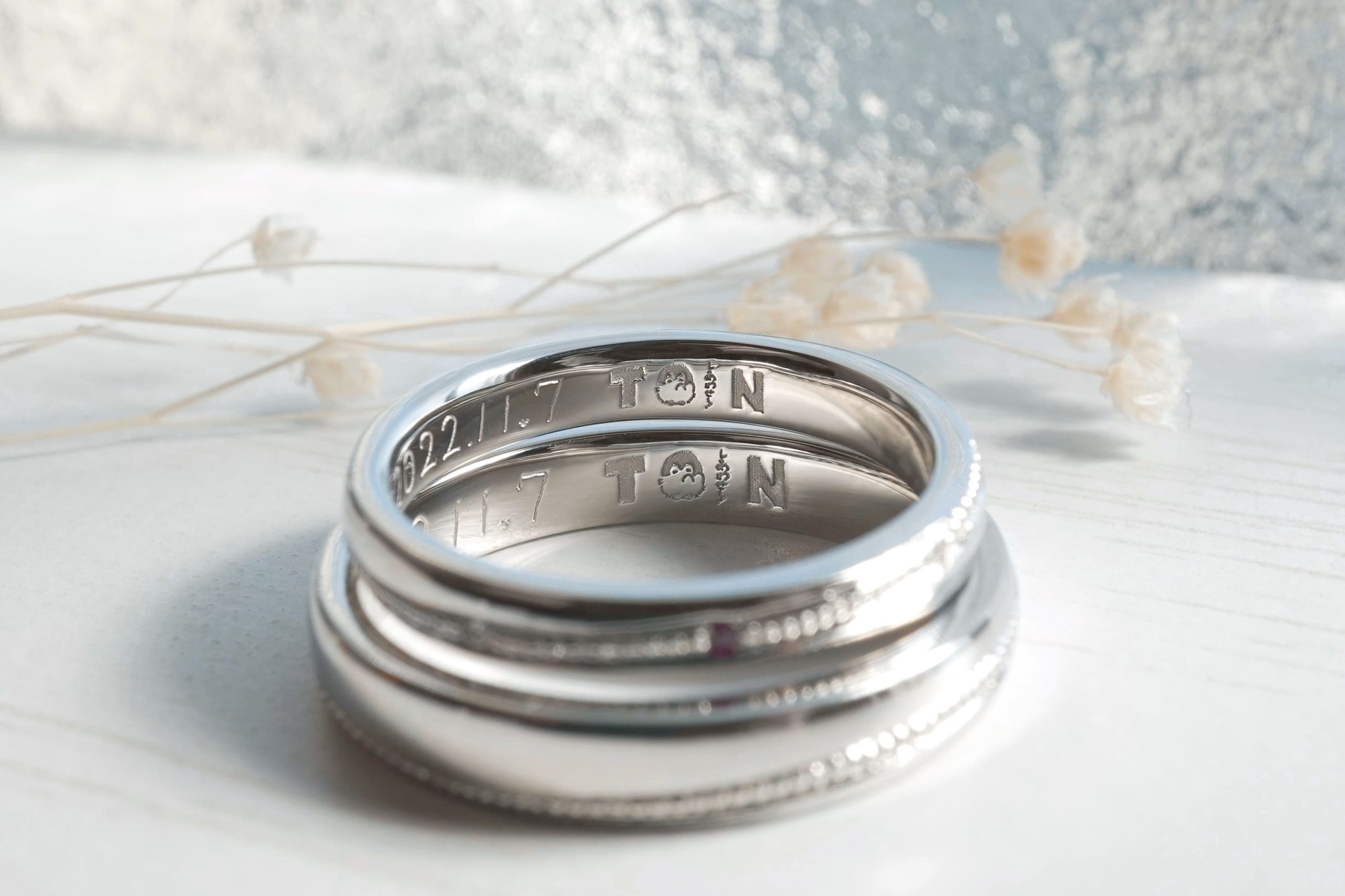 おふたりともPt900素材をお選びいただき指輪を作製。