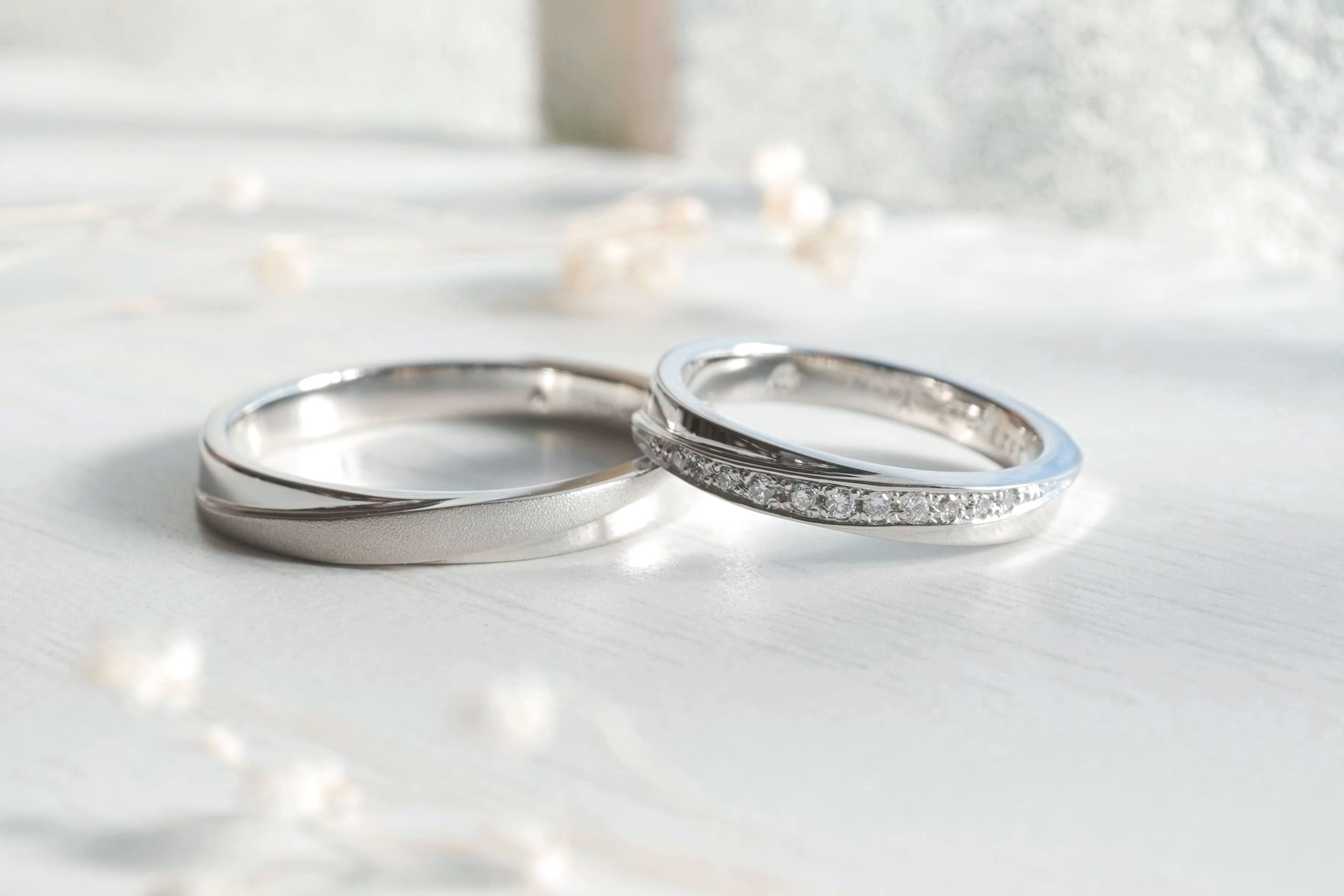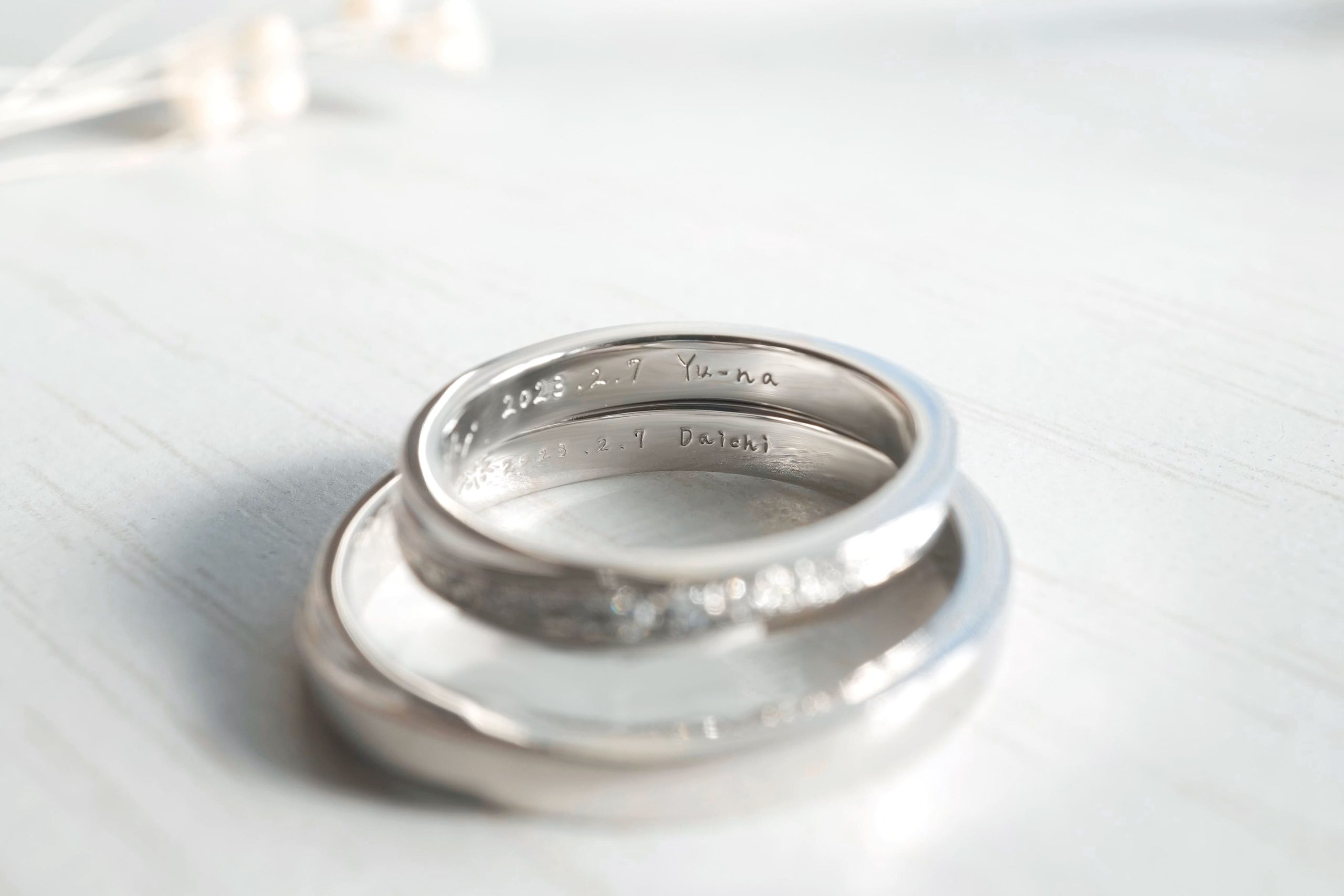 おふたりともPt900素材をお選びいただき指輪を作製。