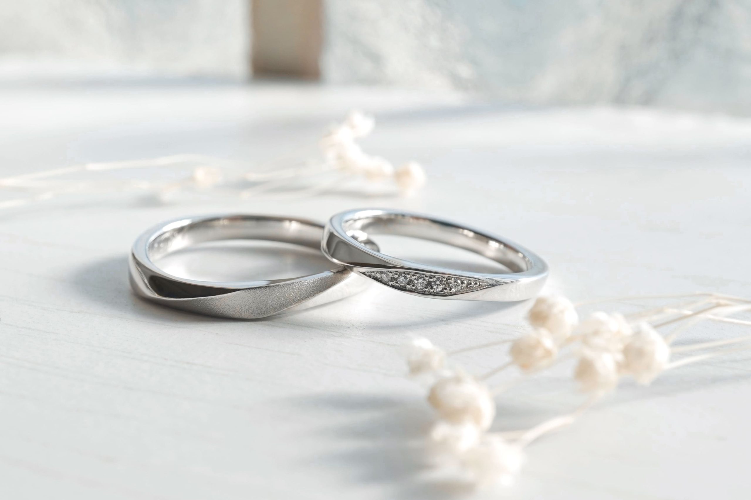 おふたりともPt900素材をお選びいただき指輪を作製。