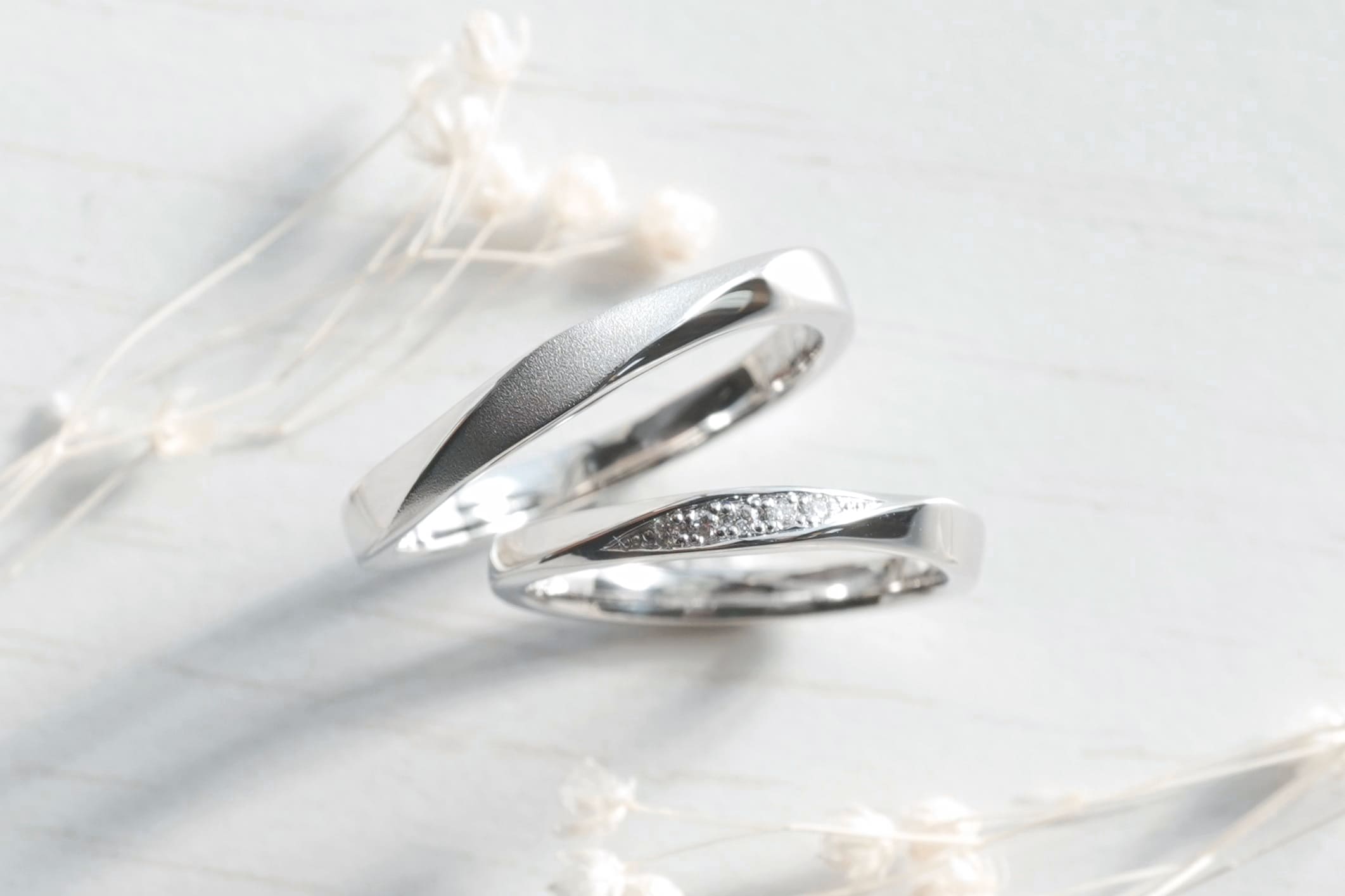 ひねりを綺麗にみせた手作り結婚指輪