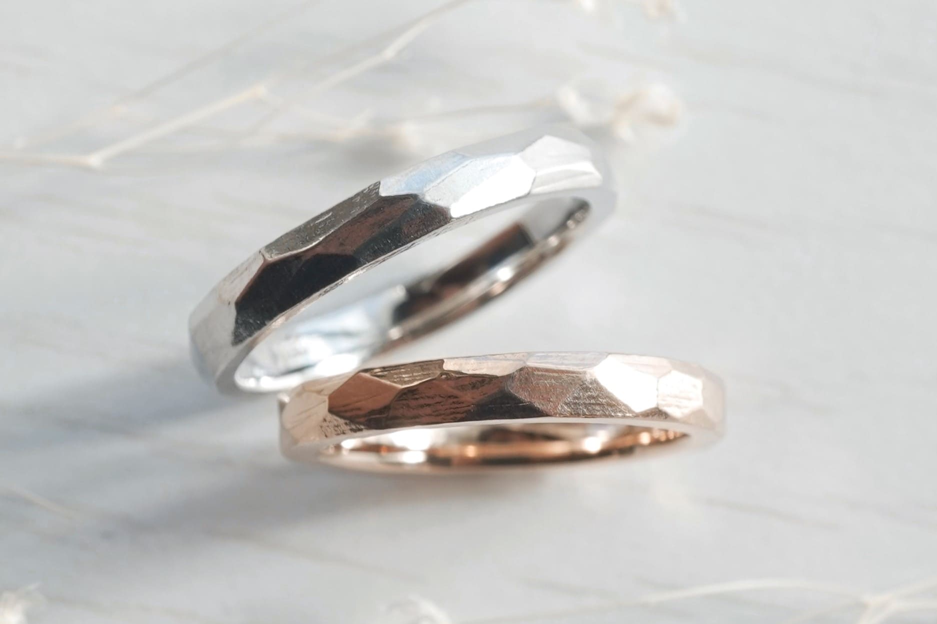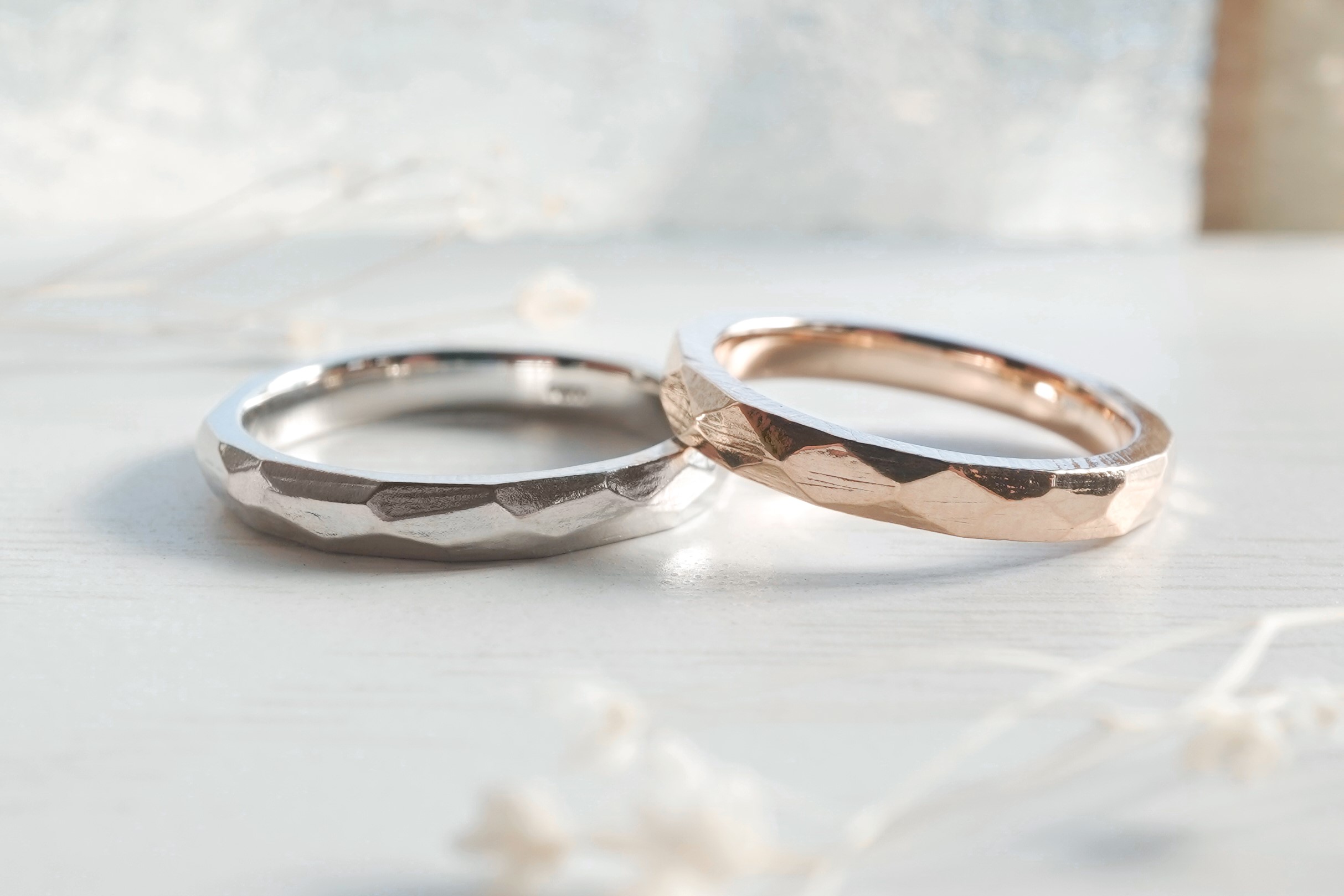 ヤスリ跡をわざと残した手作り結婚指輪