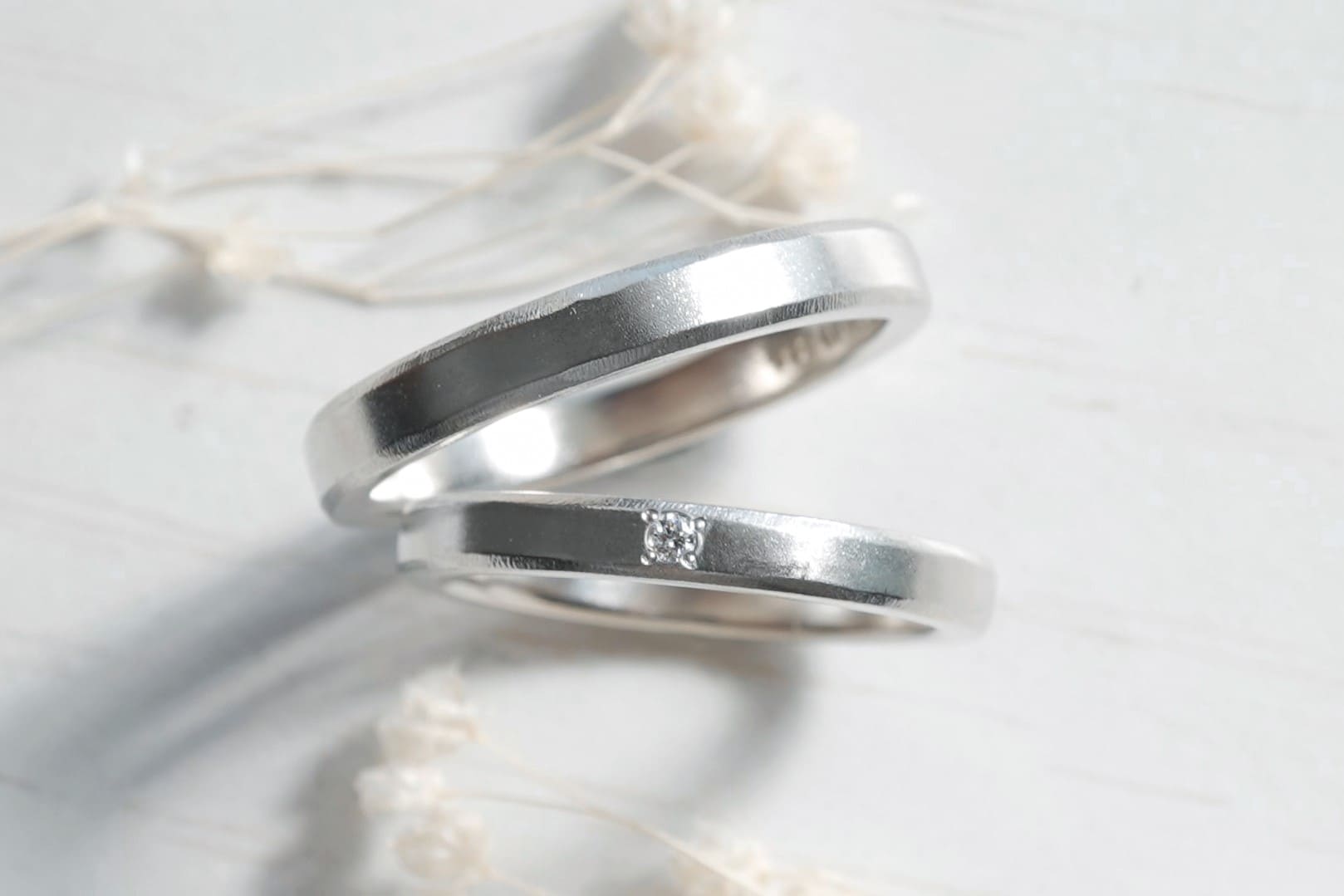 おふたりともPt900素材をお選びいただき指輪を作製。