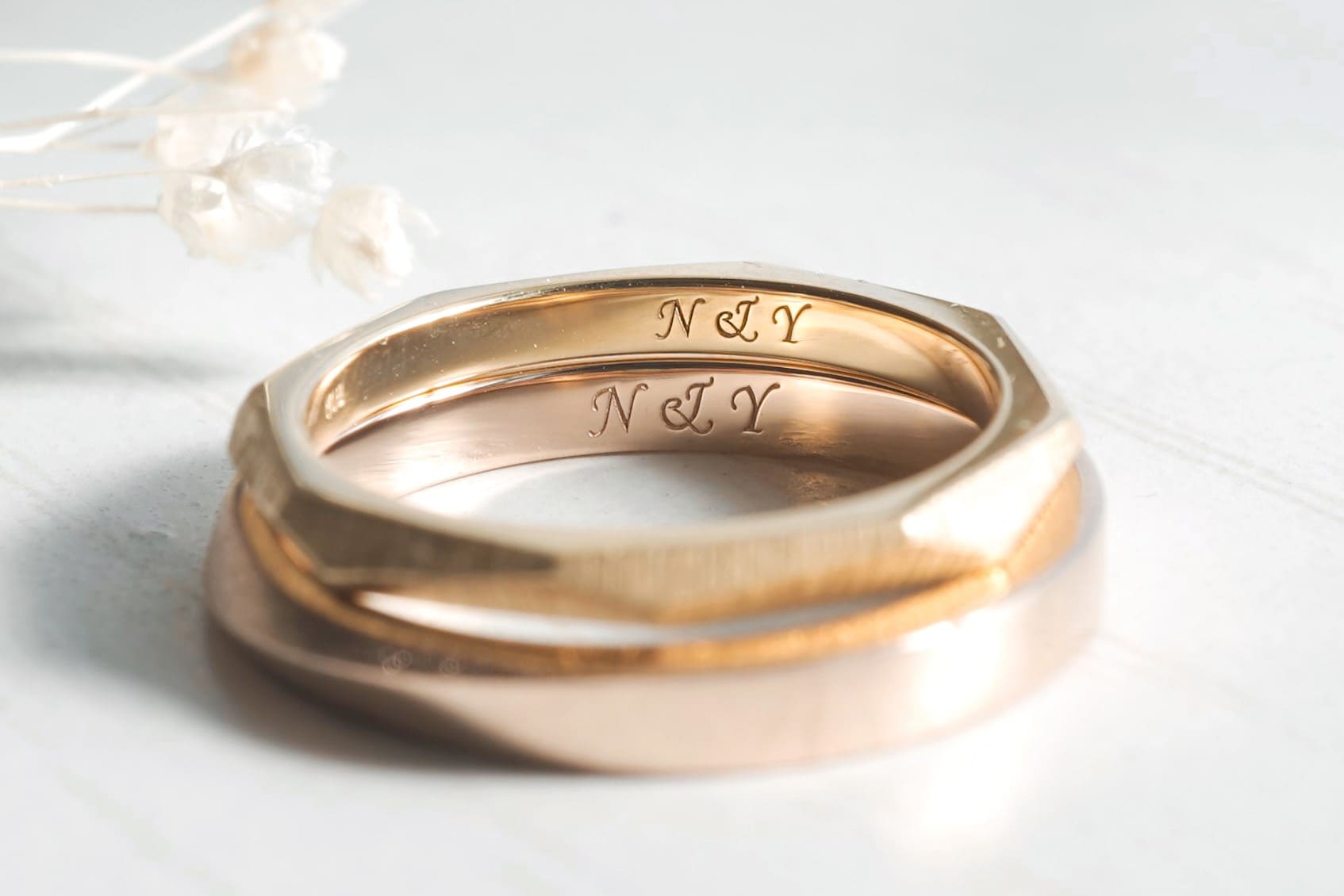 指輪の内側にはおふたりのイニシャルが