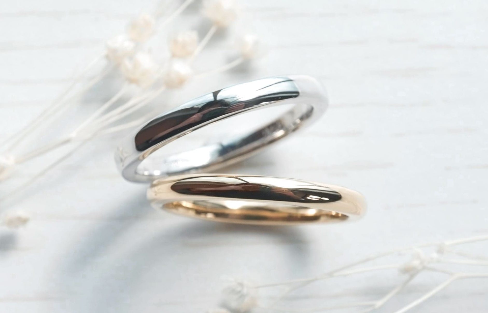 甲丸形状と平甲丸形状の手作り結婚指輪