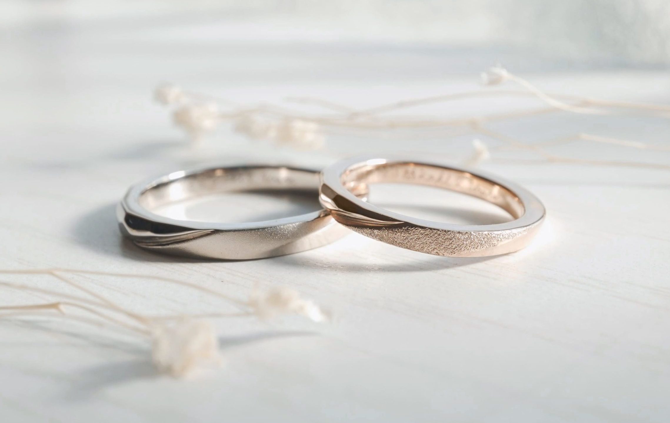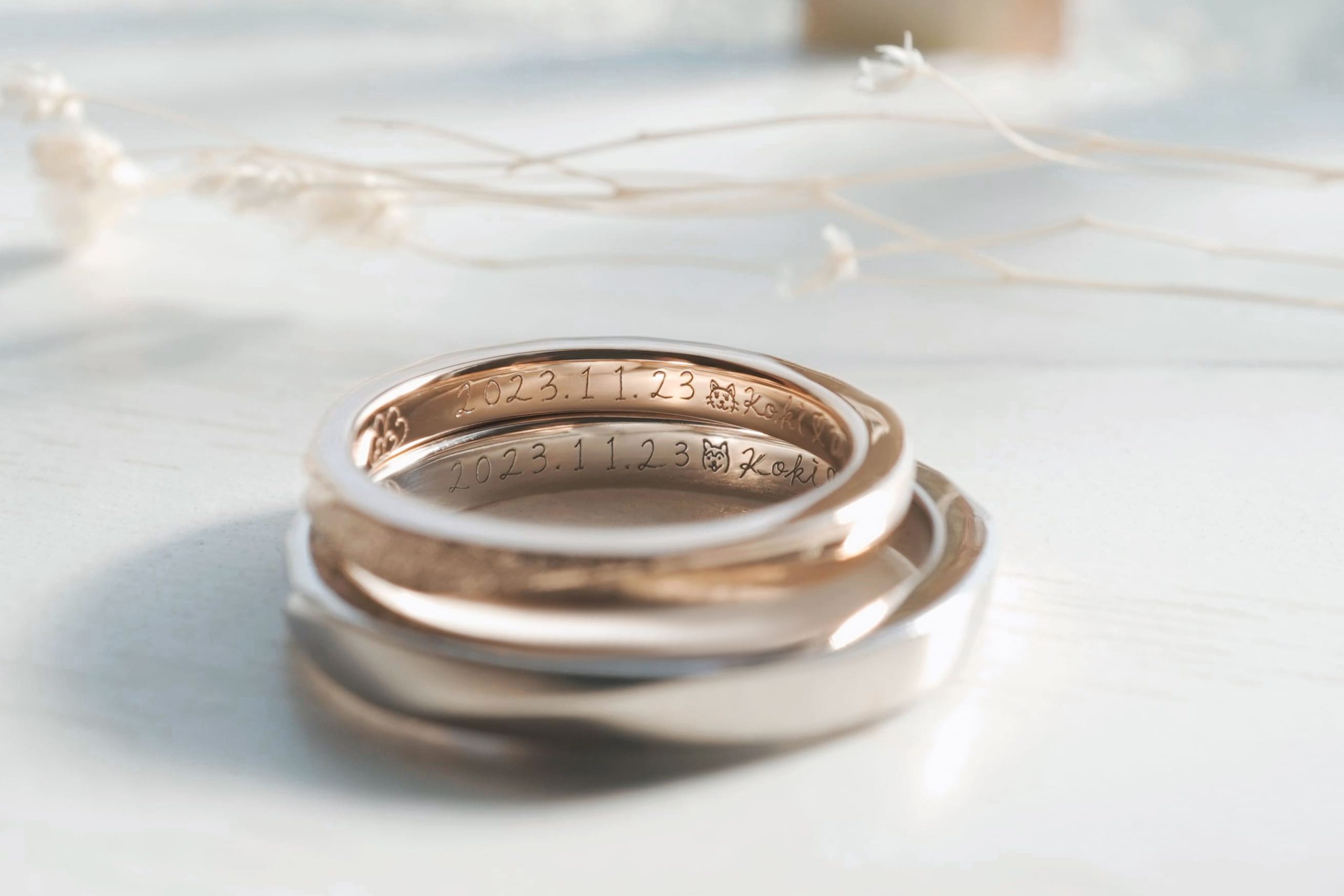 ひねりと槌目が施された指輪を手作りして頂きました。