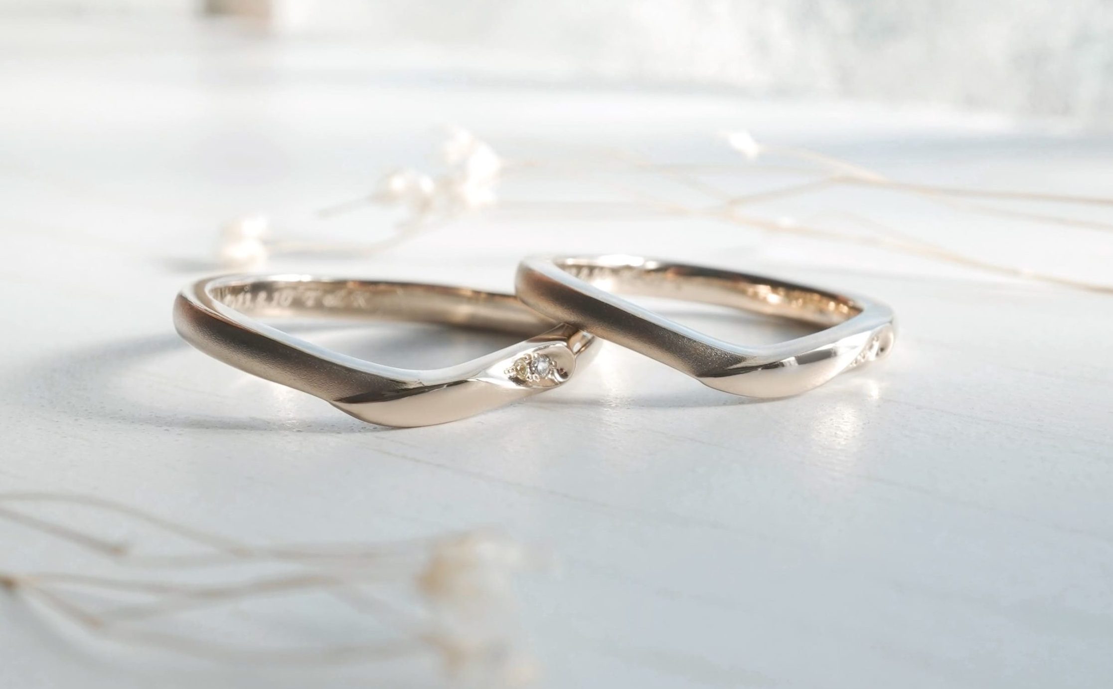 おふたりともK18シャンパンゴールド素材を使用し