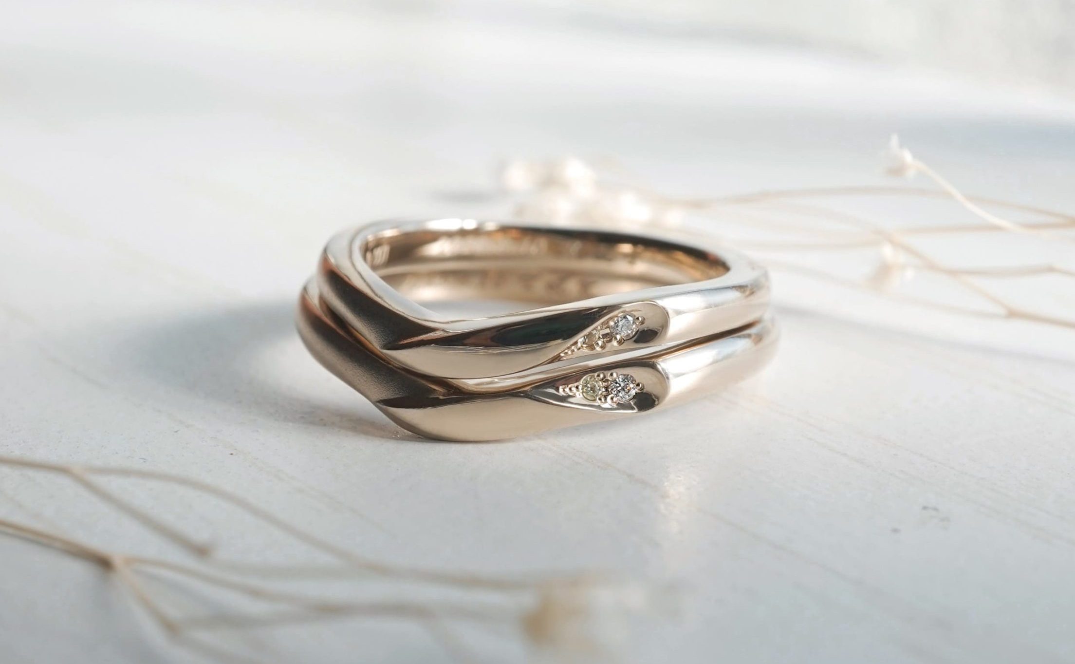 重ねても楽しめる手作り結婚指輪