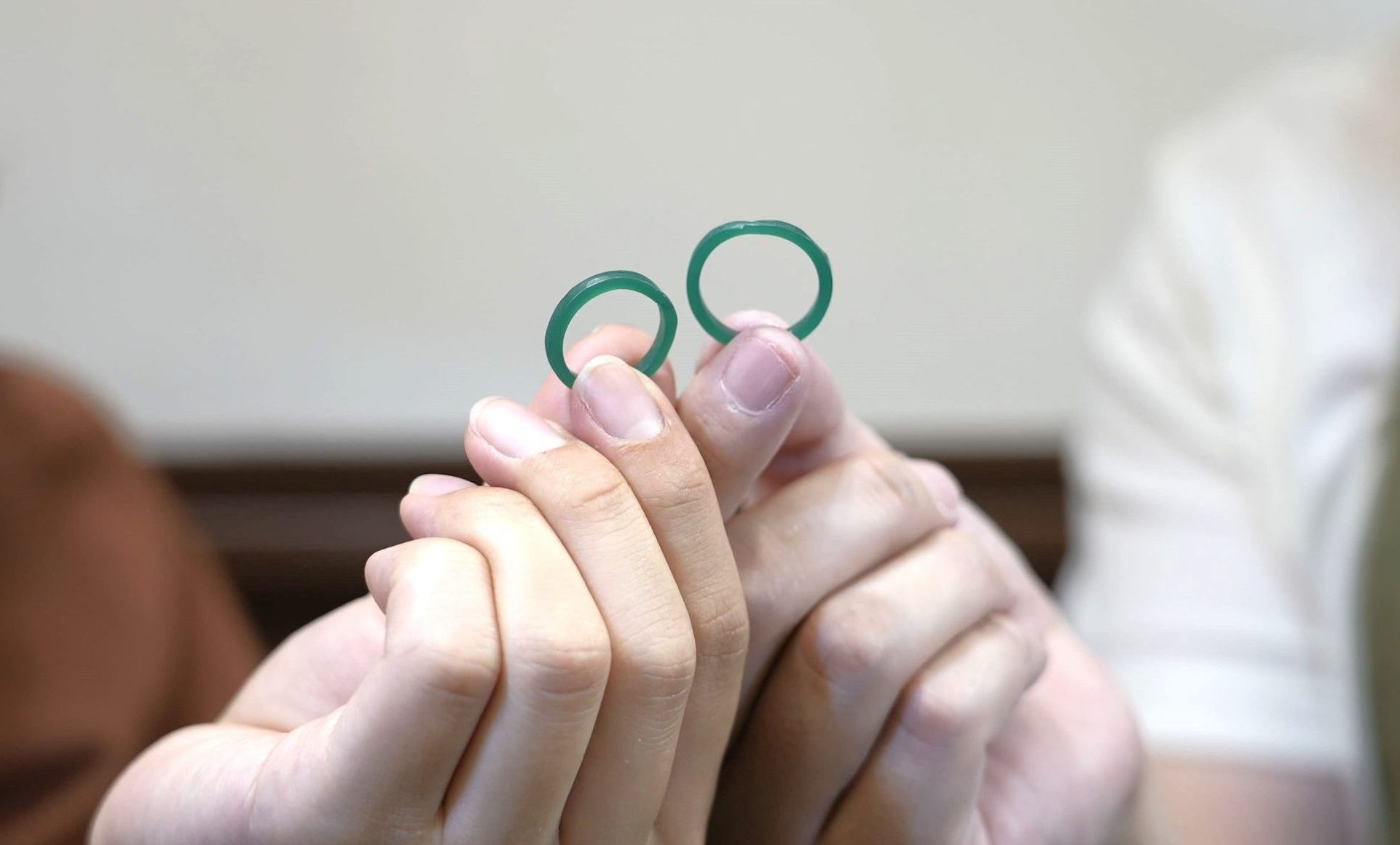 二本の指輪を重ねるとハートが浮かび上がる