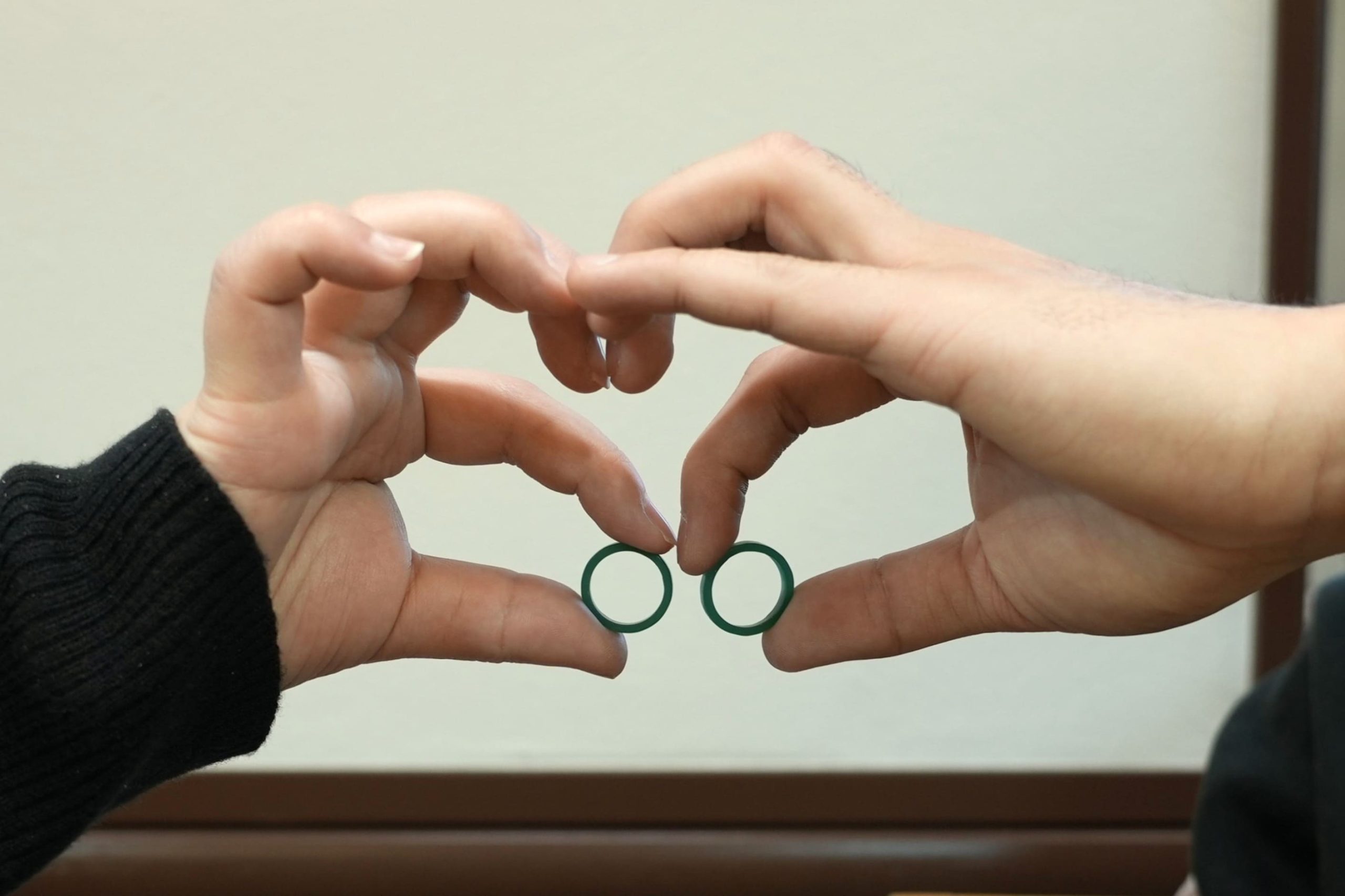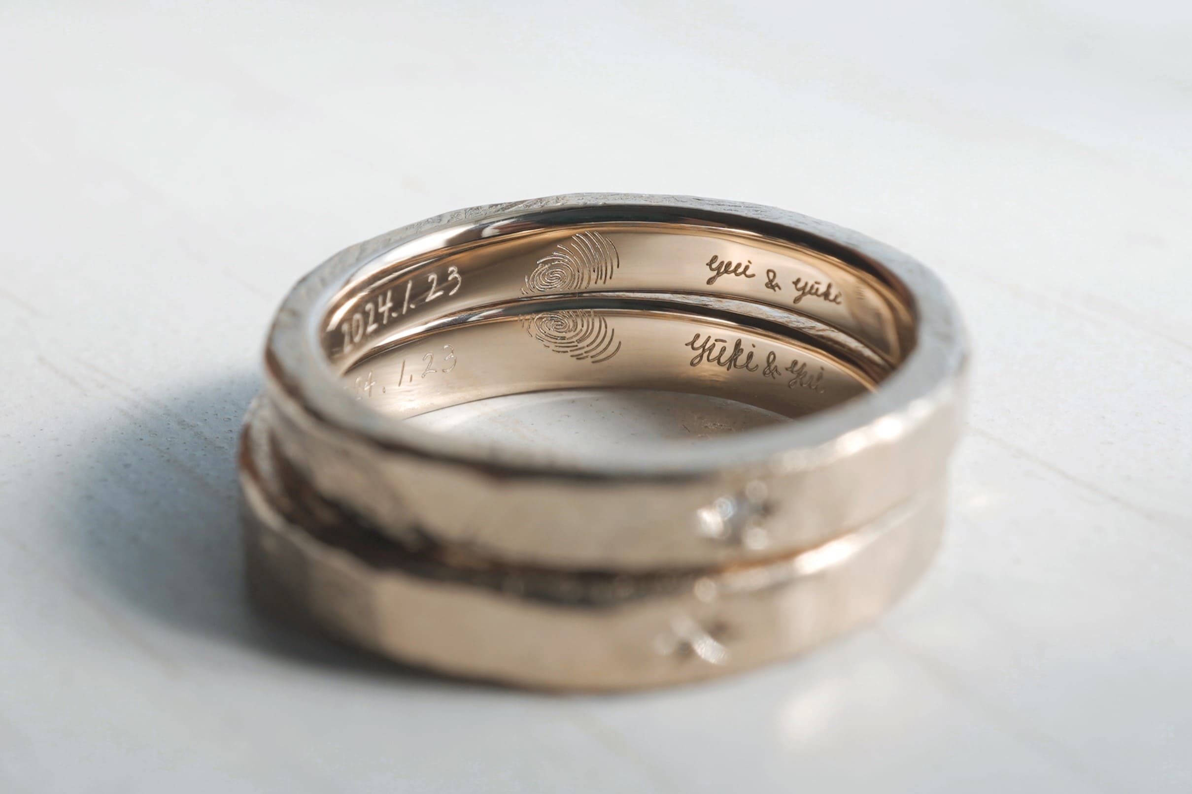 ハートの指紋を刻印した手作り結婚指輪