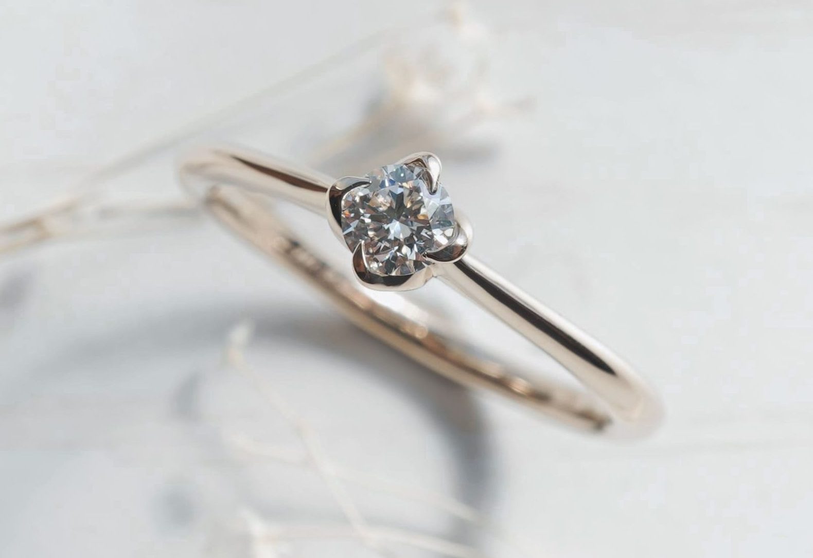 センターダイヤモンドを花びらが包み込むように