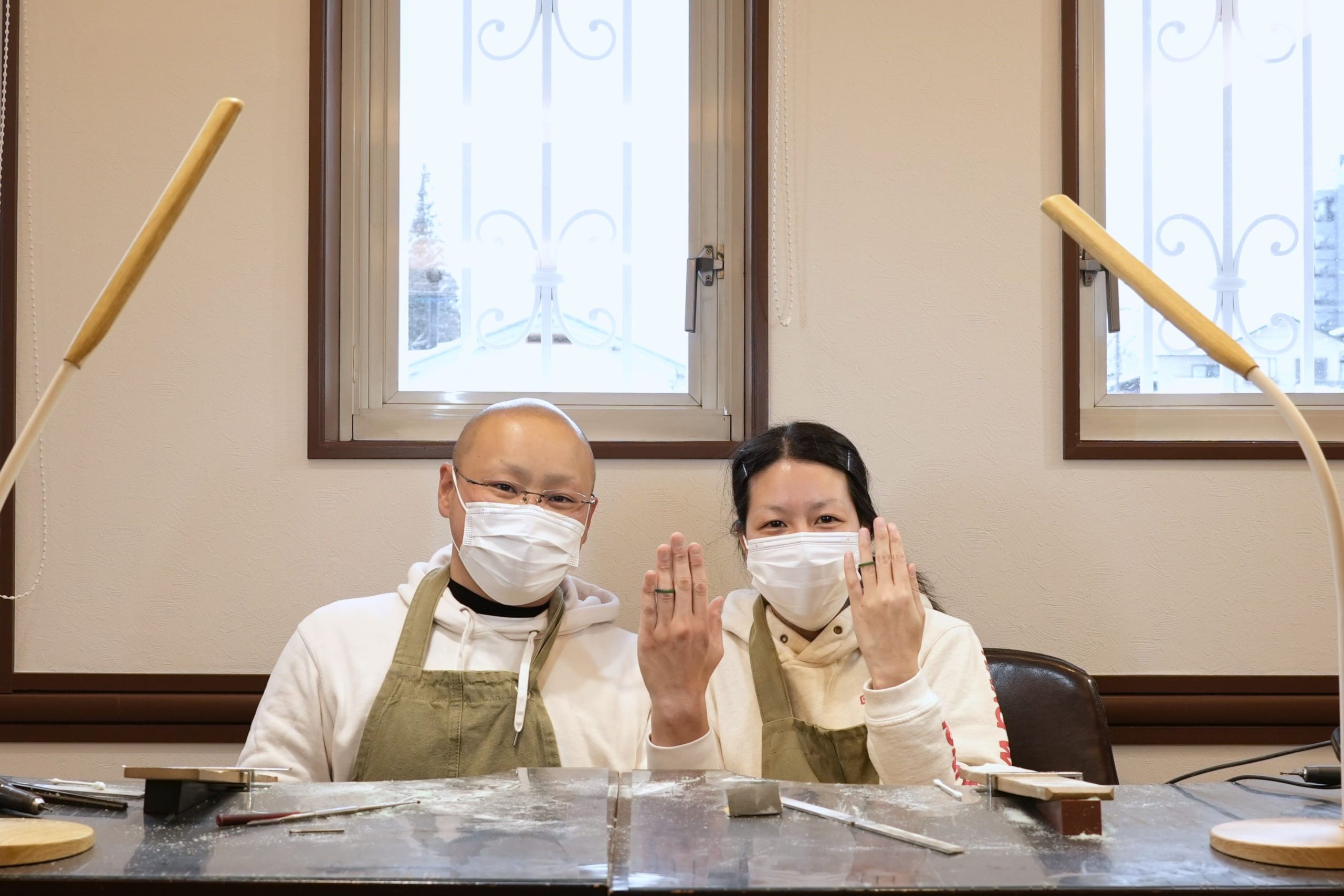 おふたりともPT900素材をお選びいただき指輪を作製。