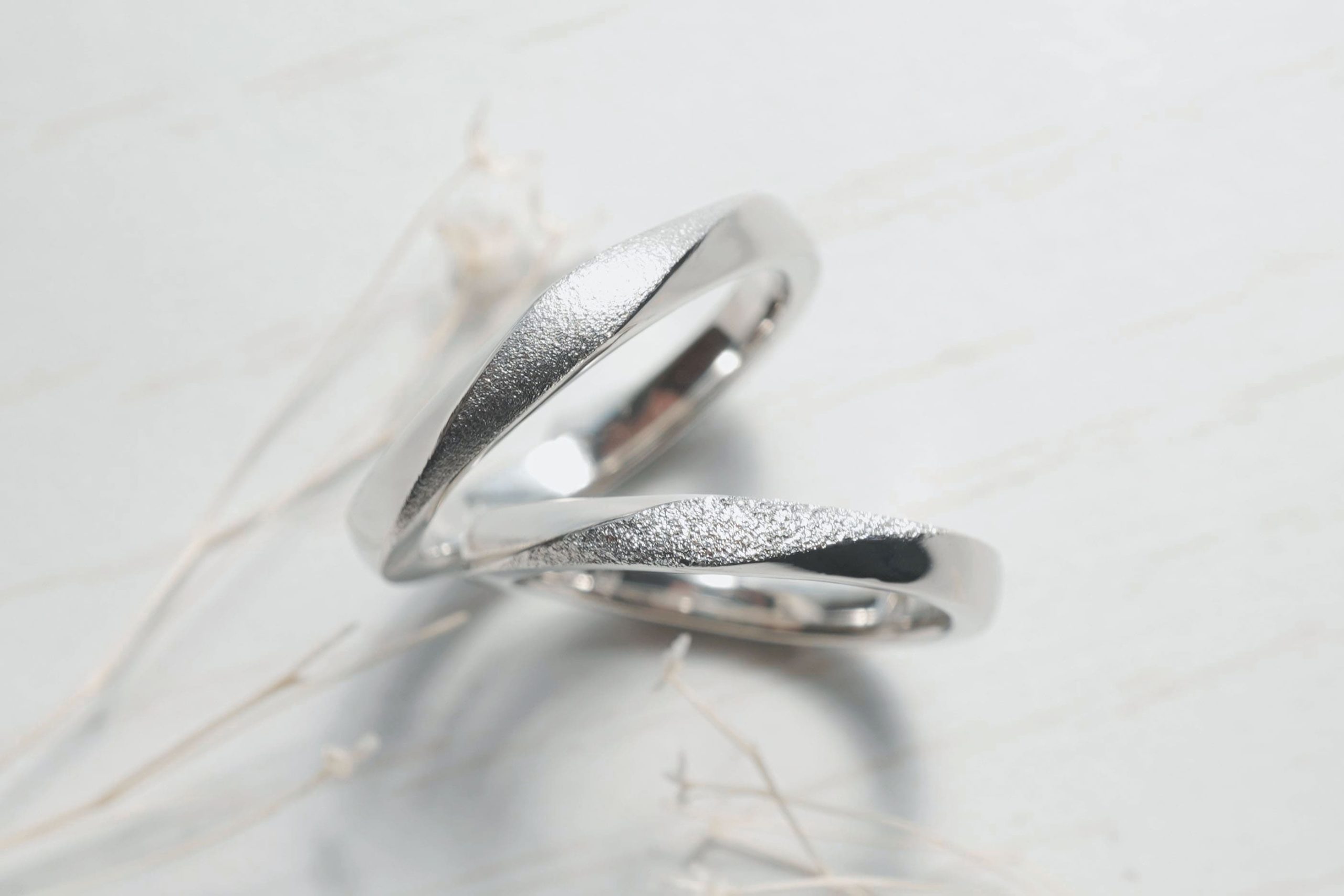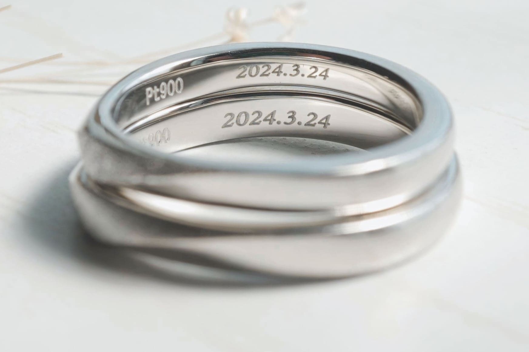おふたりともPt900素材をお選びいただき指輪を作製。