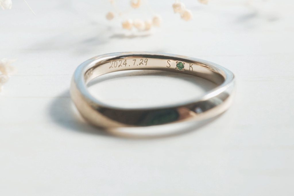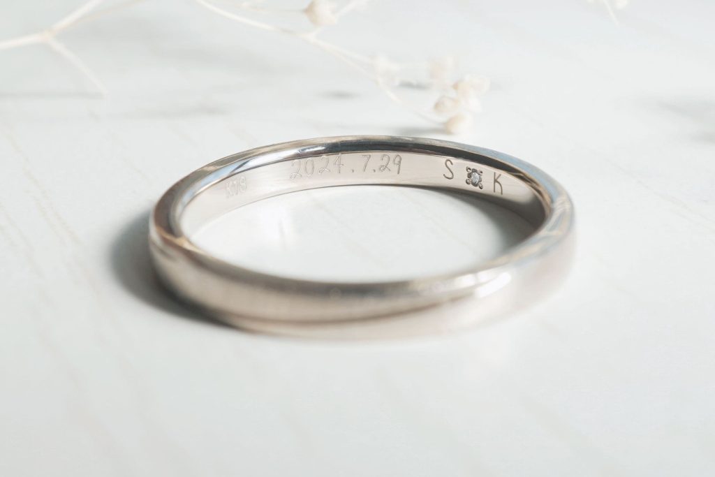 内側には手書き文字で記念日とイニシャルを刻印。