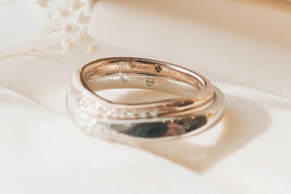 内側には手書き文字でおふたりの名前と記念日を刻印。