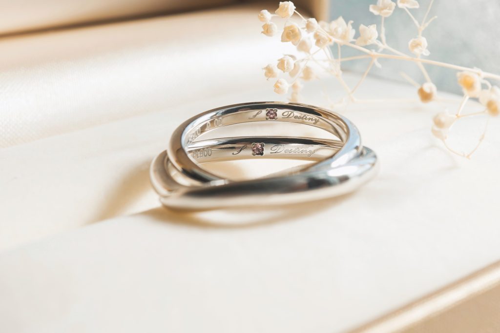 内側にはピンクトルマリンと、おふたりのイニシャルが