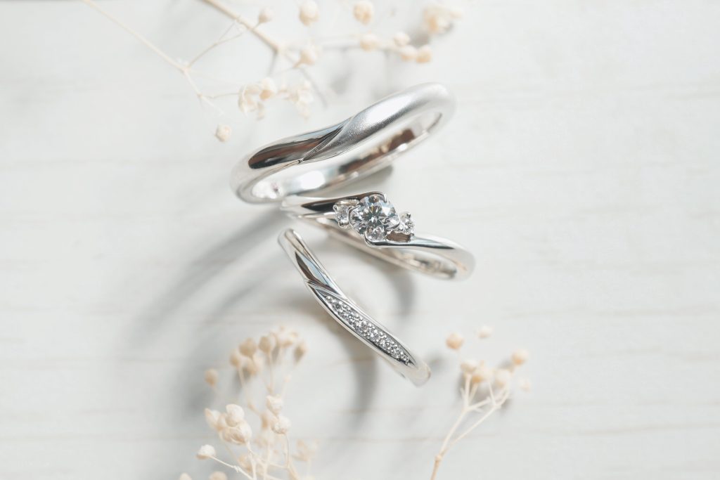 lady’sリングはダイヤを6石留めた鏡面仕上げ。