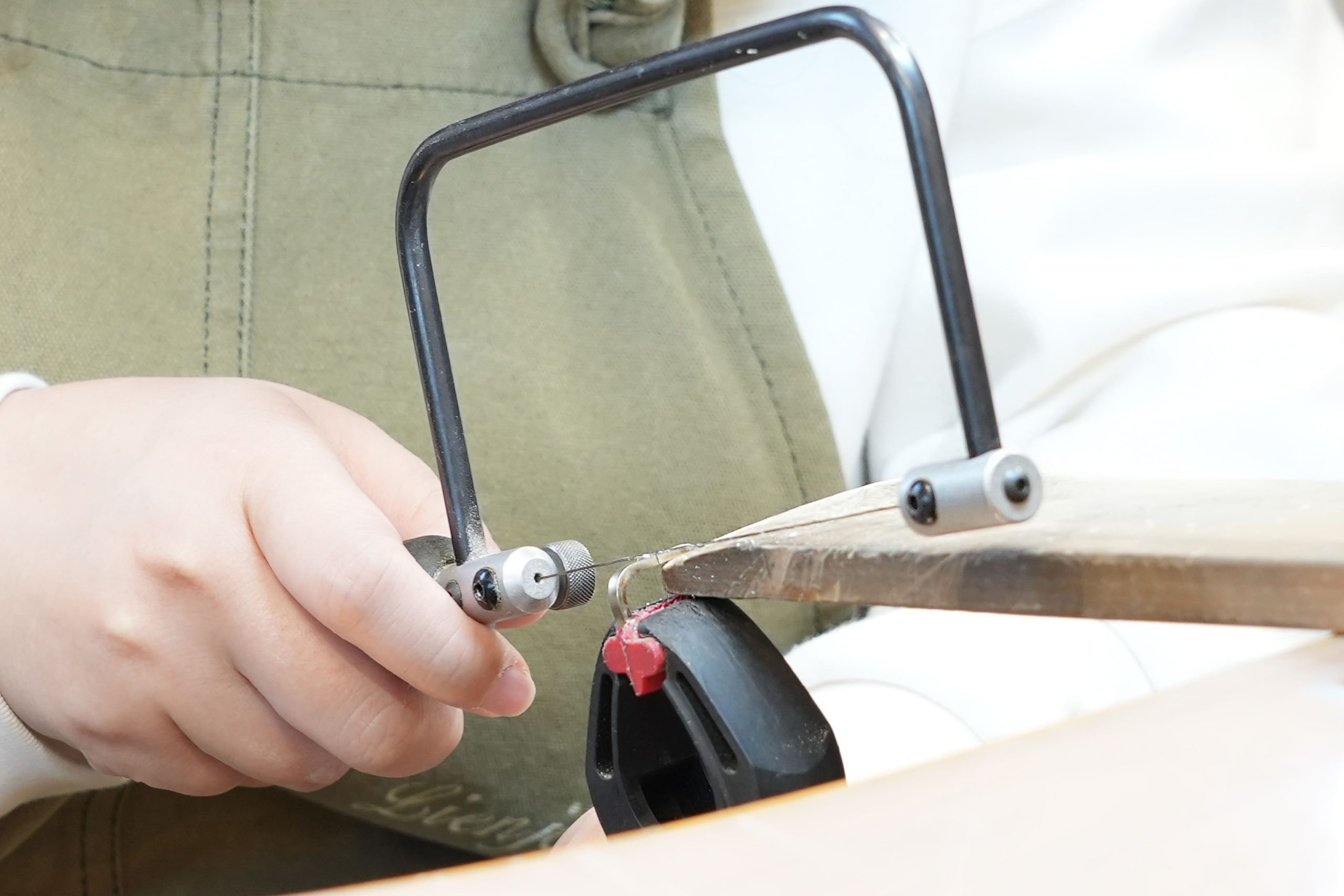糸鋸という道具を使い、つなぎ目の凹凸を無くすことで余分な隙間が無くなり、綺麗に繋がりやすくなります。