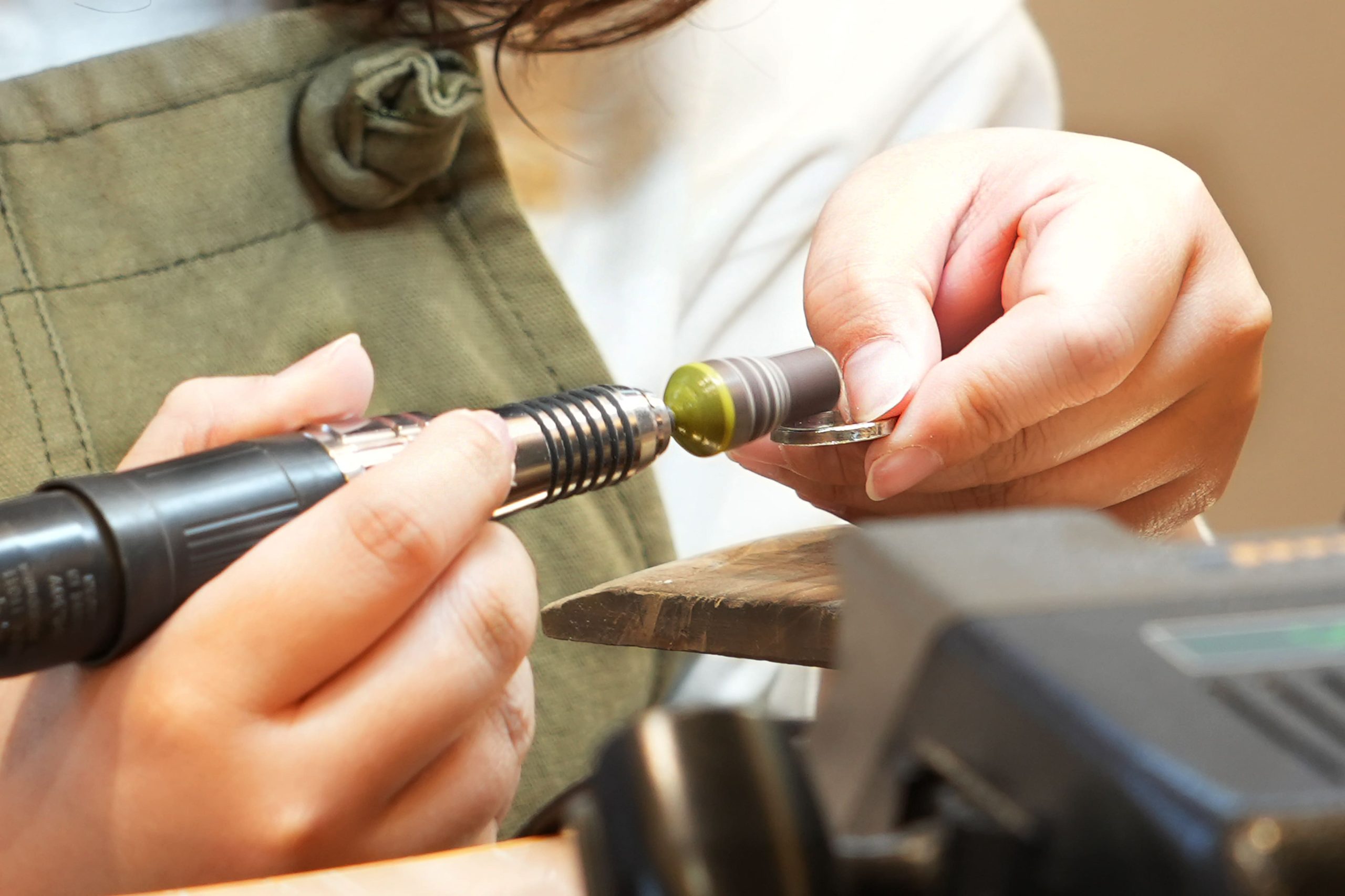 リューターという道具を使い、仕上げている様子。