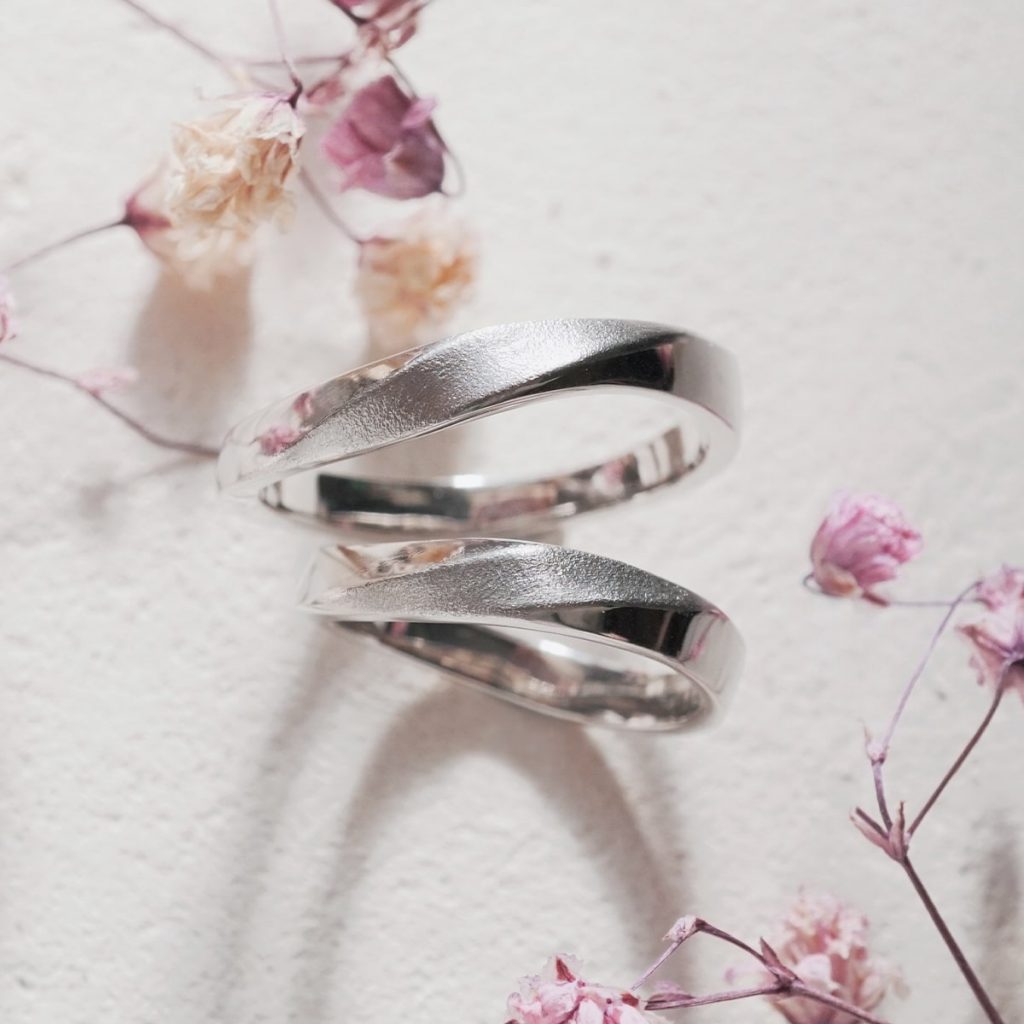 PT900素材の手作り結婚指輪。 中央ラインにはつや消しを加えています。