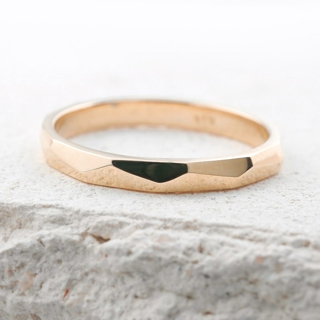 凸凹デザインのK18イエローゴールドリング。