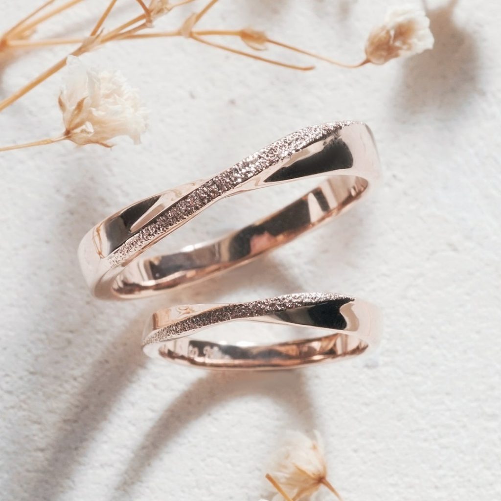 どちらもK18ピンクゴールド素材。デザインはメビウス型。