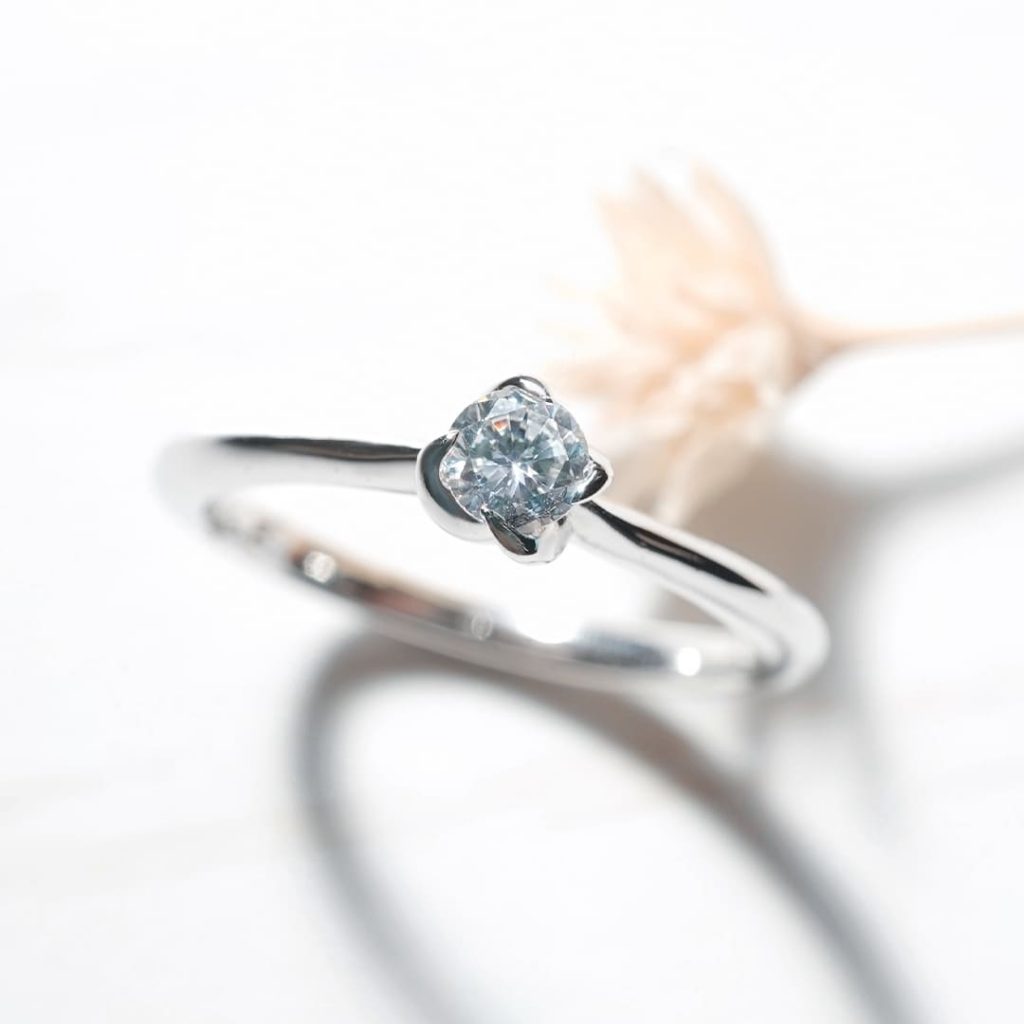 花巻デザインの婚約指輪。 素材はプラチナ。