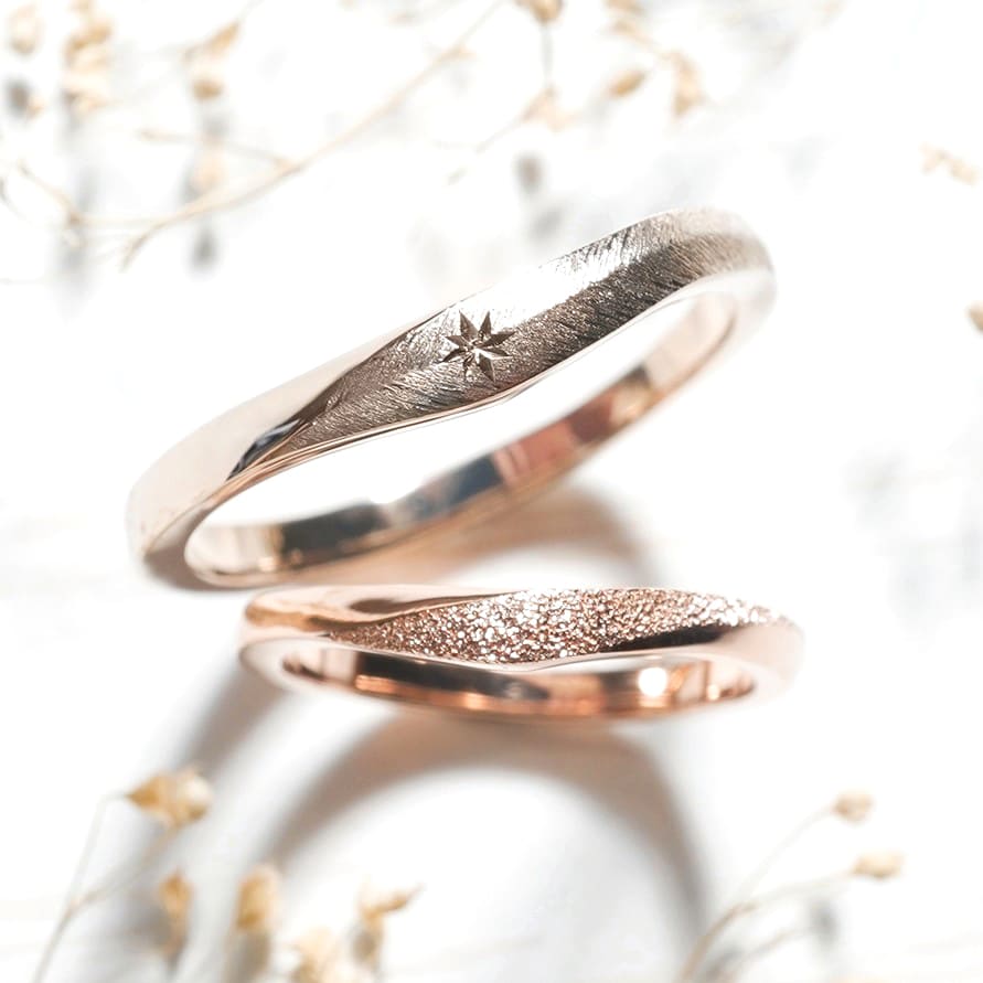 下のリングはK18ピンクゴールド素材、ラインに沿ってスターダストを加え、キラキラさせています。