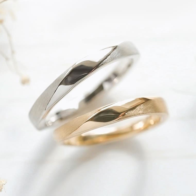 プラチナ素材とK18イエローゴールド素材の手作り結婚指輪。
