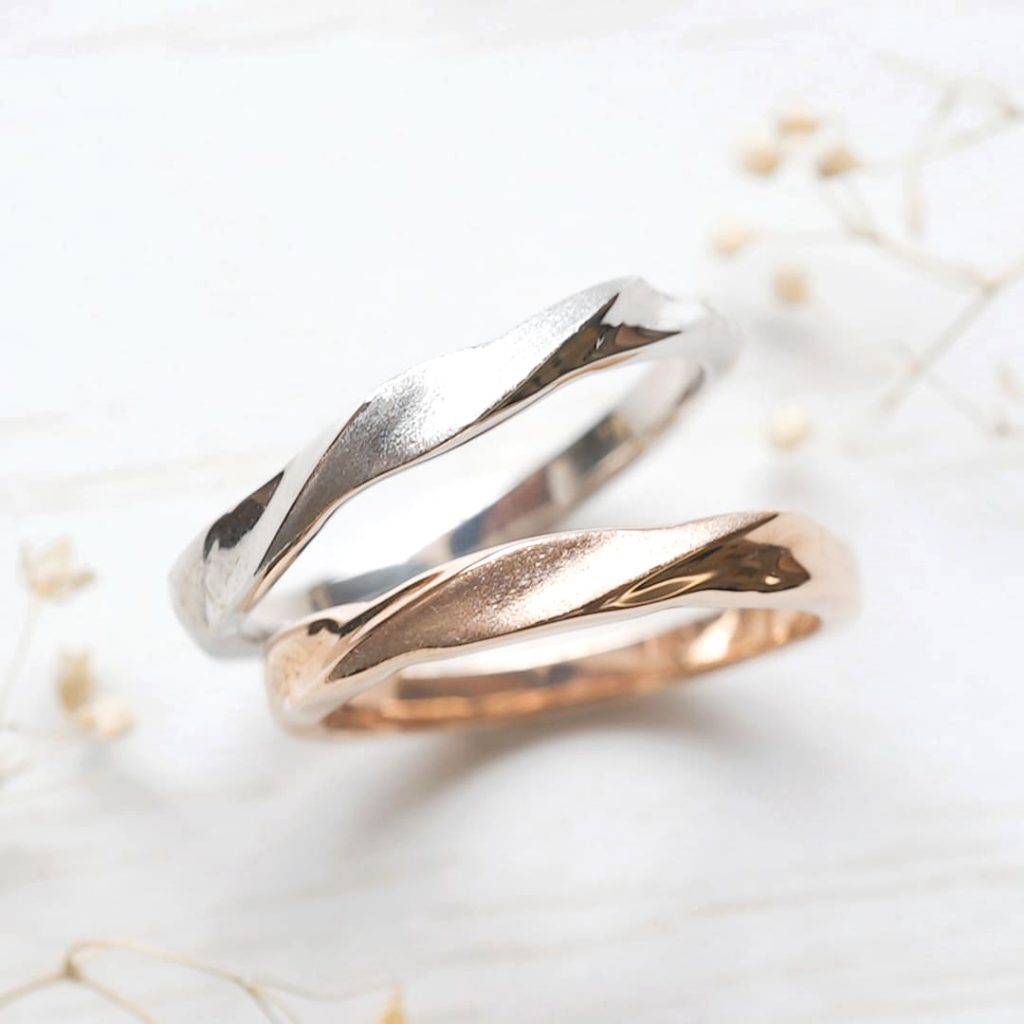 波打つデザインが特徴的な手作り結婚指輪。