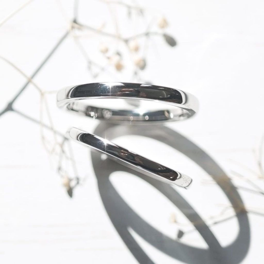 結婚指輪彫金製作コースでお作りいただいた結婚指輪。 素材はプラチナ900。シンプルな平甲丸デザインです。
