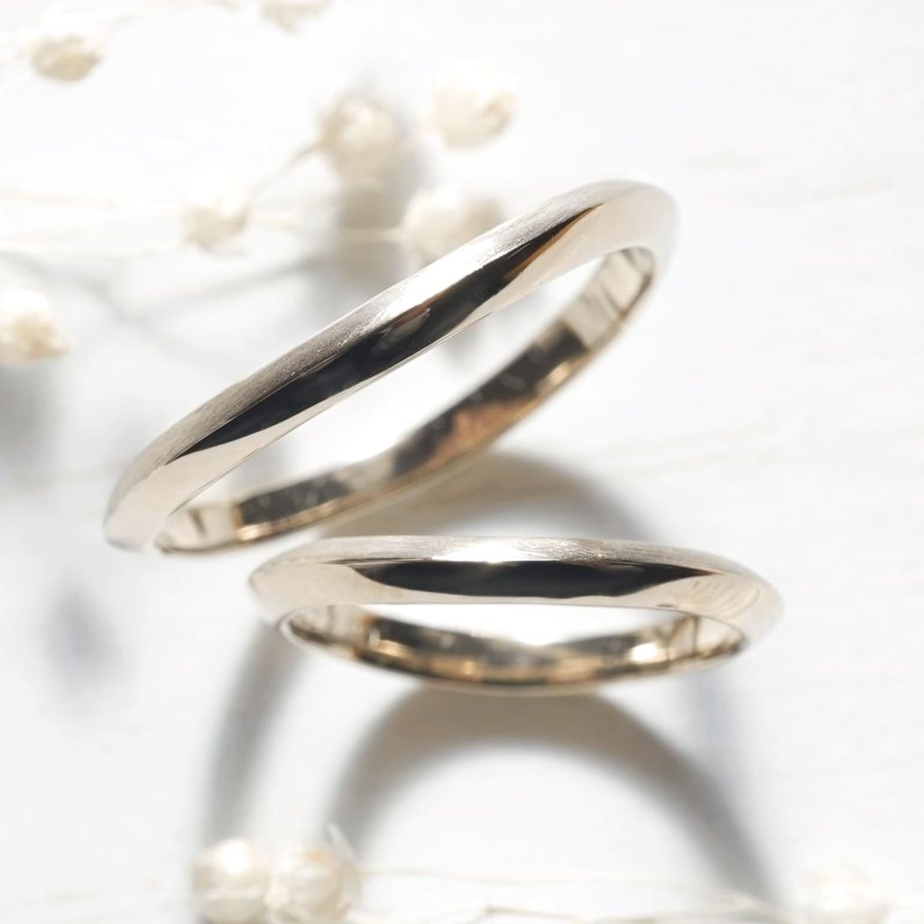 ウェーブ形状の手作り結婚指輪。