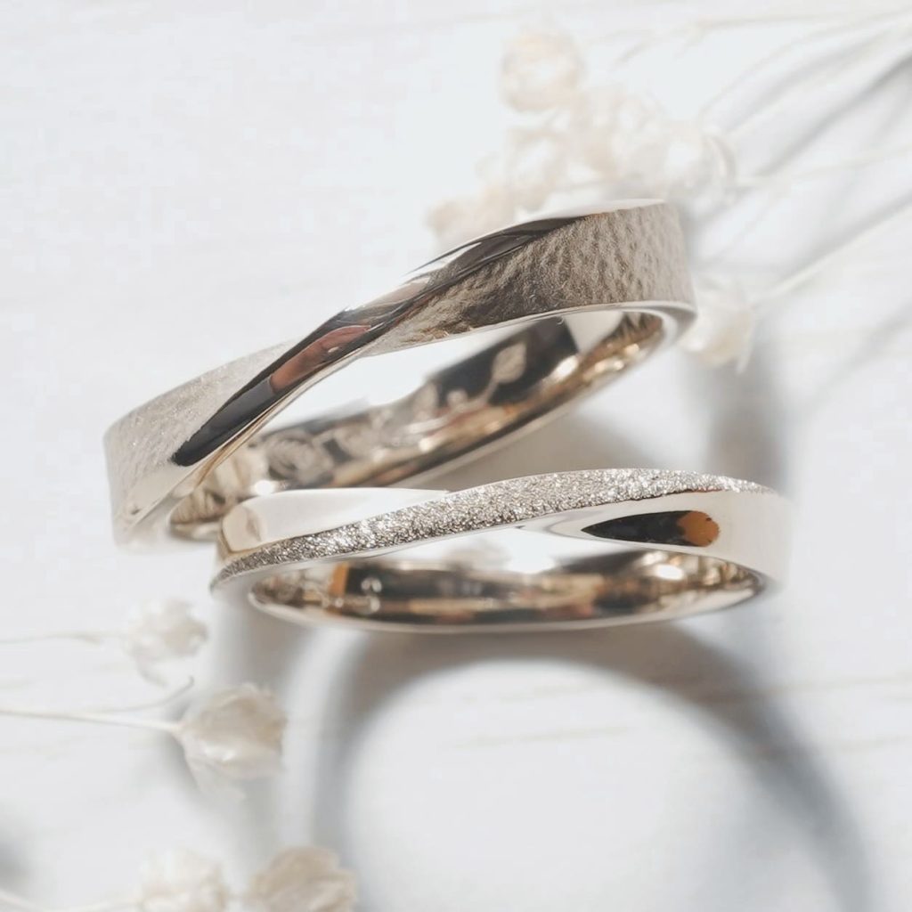 どちらもK18シャンパンゴールド素材のメビウス型、手作り結婚指輪。