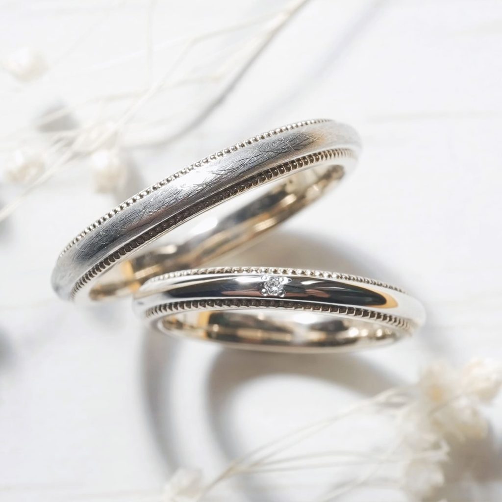 上のリングは表面にアンティーク加工を施しています。