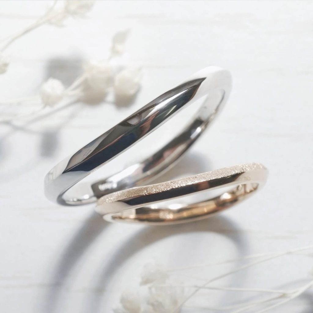 上のリングはプラチナ900素材。下のリングはK18ピンクゴールド素材です。