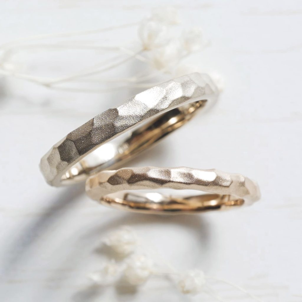 WAXコースで手作りいただいた槌目の結婚指輪。