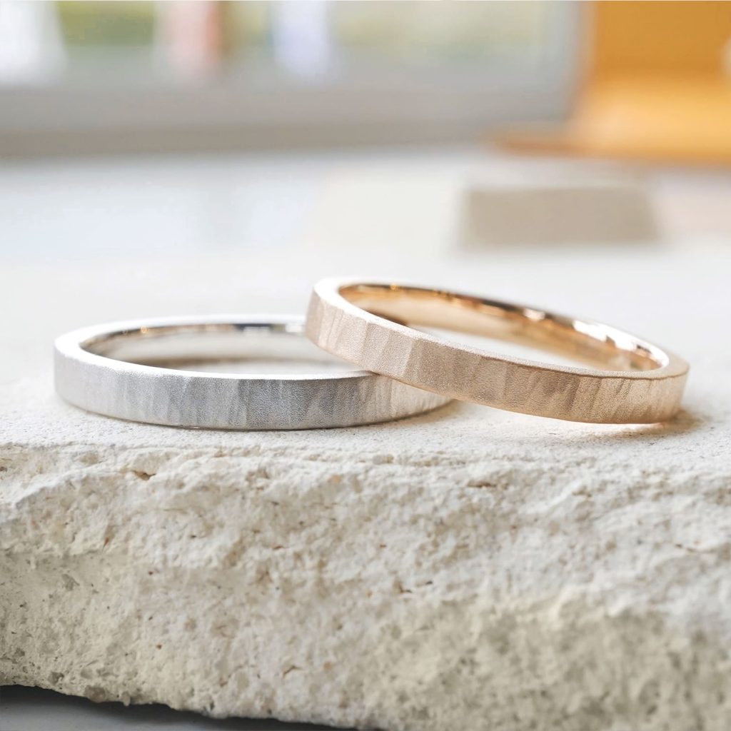 結婚指輪彫金コースで作ることのできる縦筋が特徴的な結婚指輪。