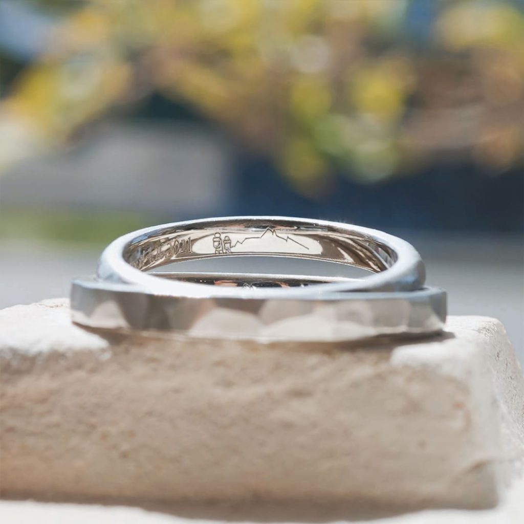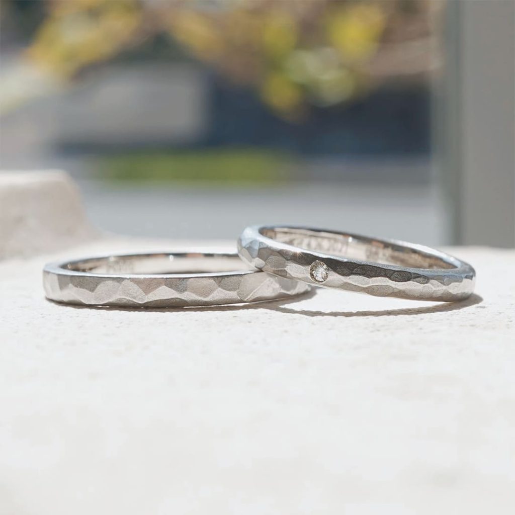平打形状と甲丸形状の手作り結婚指輪。