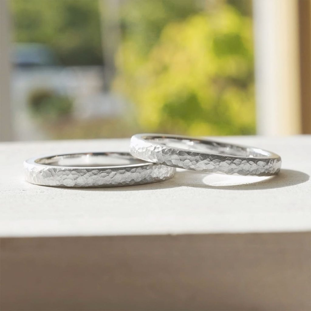 表面は細かな槌目模様が広がっています。ハンマーでひとつひとつ打っていただきました。
