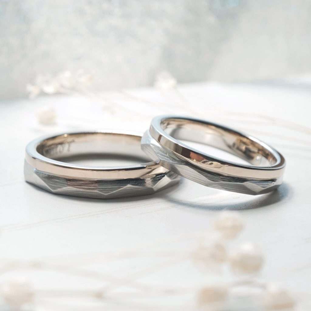プラチナ900とK18シャンパンゴールドを組み合わせた手作り結婚指輪。